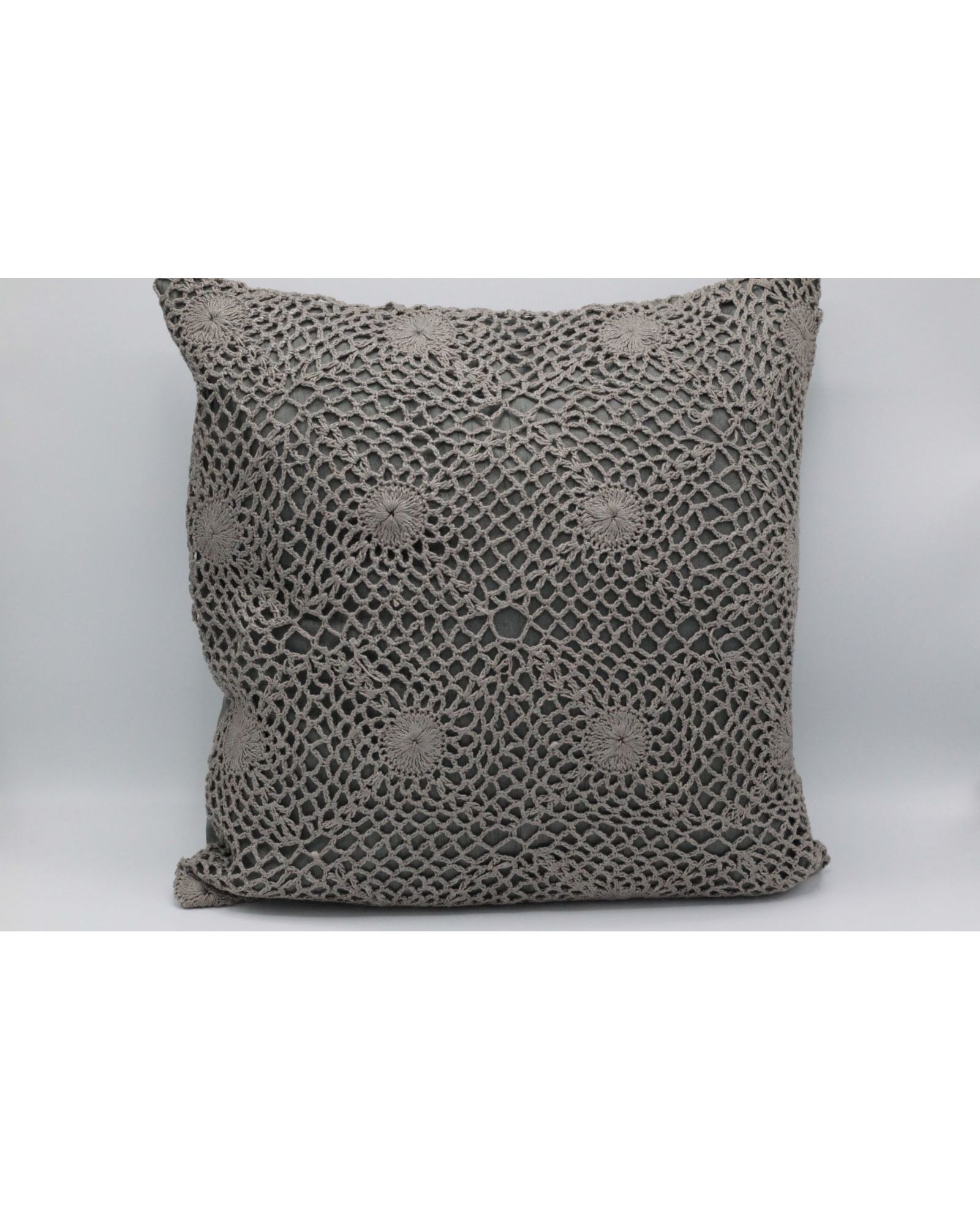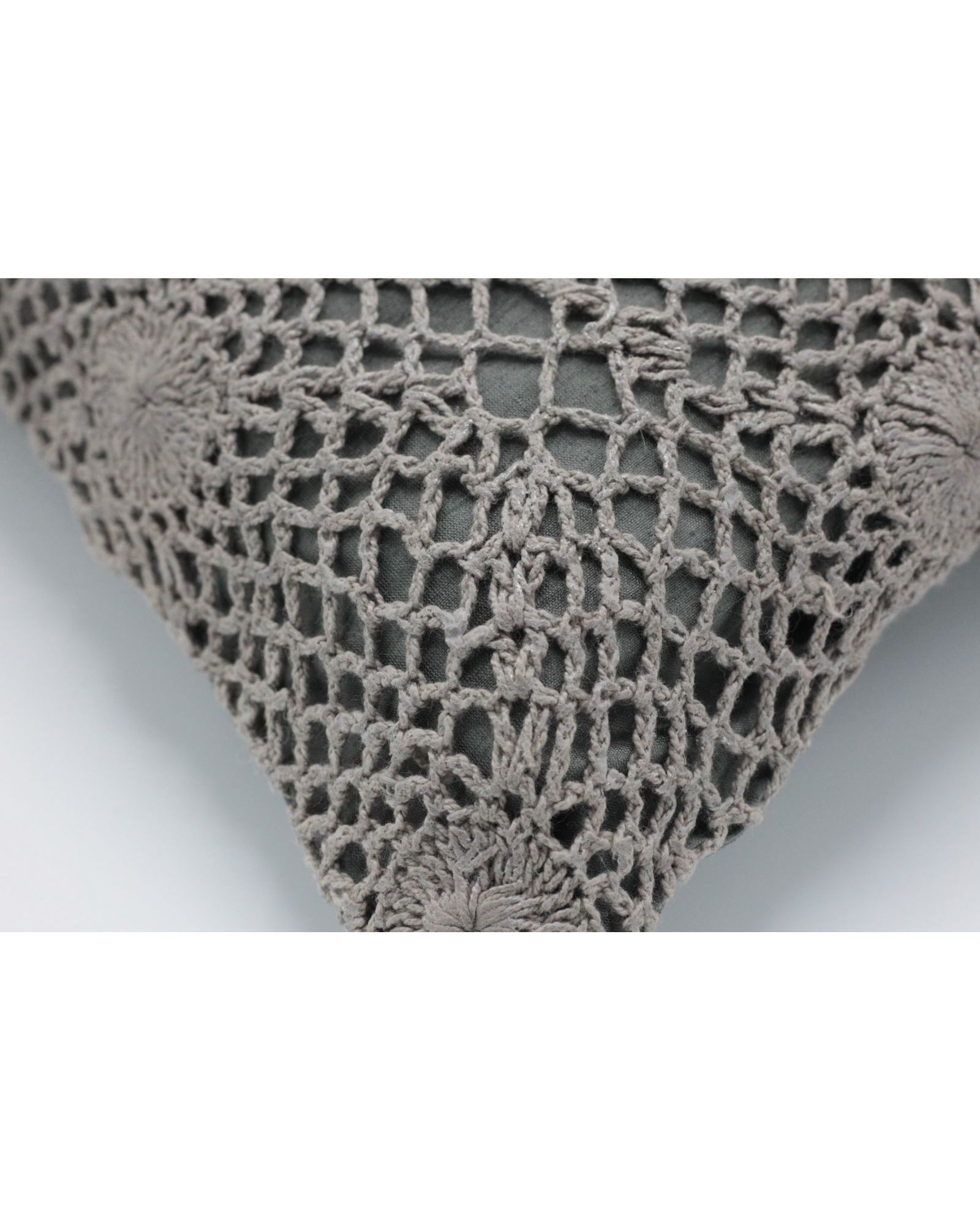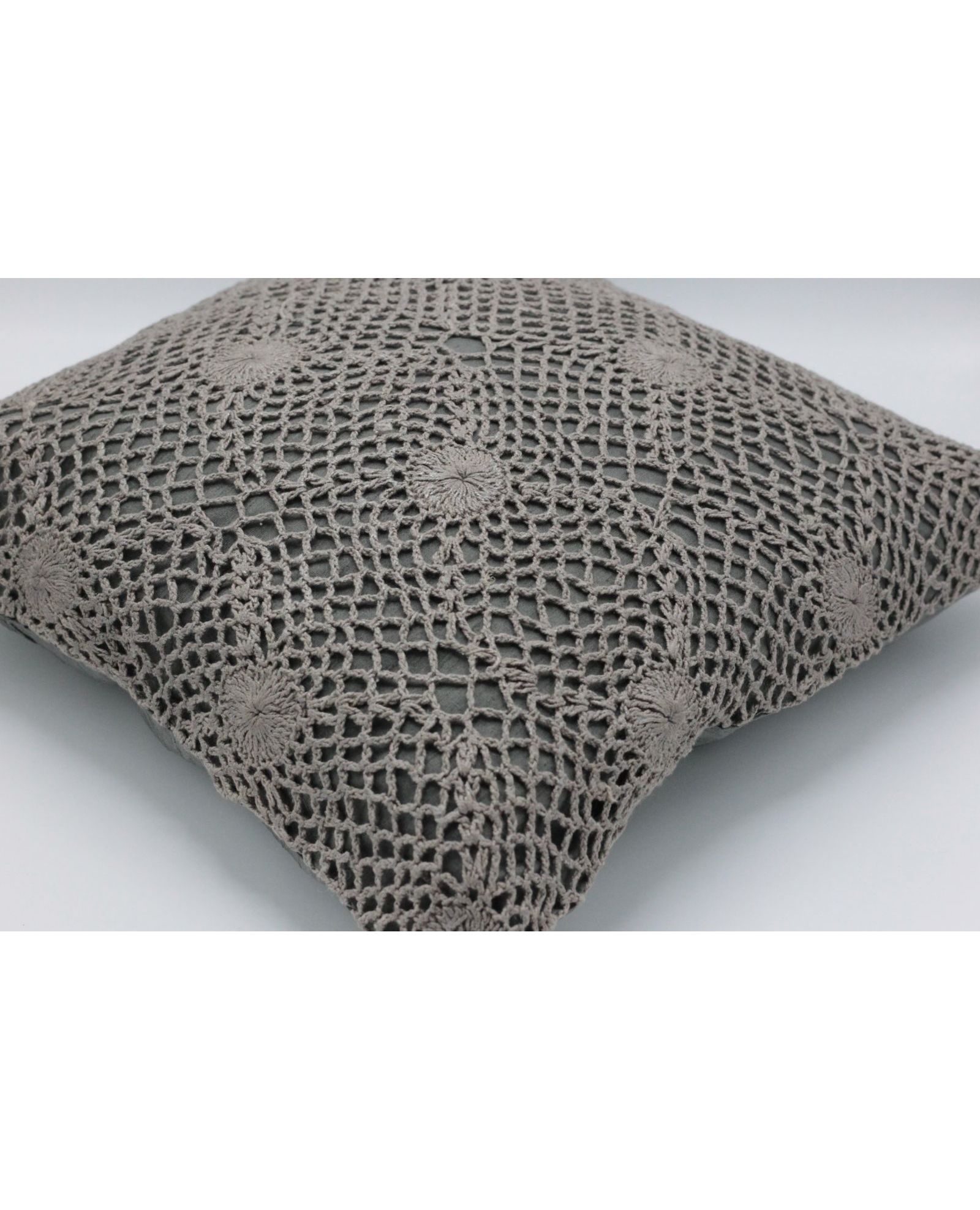 Декоративна наволочка 40х40 см з ажурною в’язкою сірого кольору