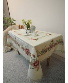Скатертина молочного кольору з вишитими квітами Ця елегантна скатертина розміром 130x170 см має молочний колір, який доповнений ніжною вишивкою квітів. Виготовлена з 100% поліестеру, вона стійка до зношування, легко чиститься та зберігає свій вигляд навіть після багаторазових прань....