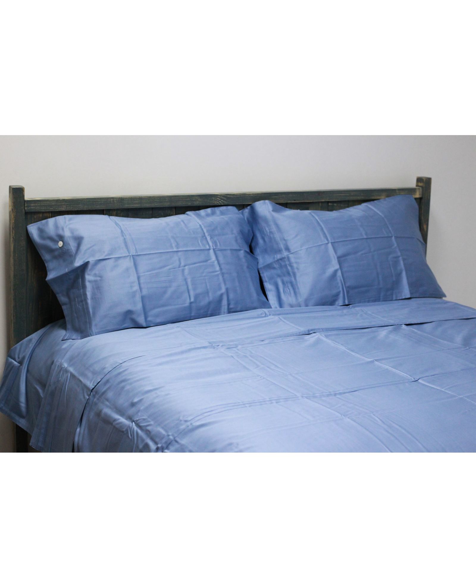 Комплект постільної білизни блакитного кольору з сатину Delux 200х230 см
