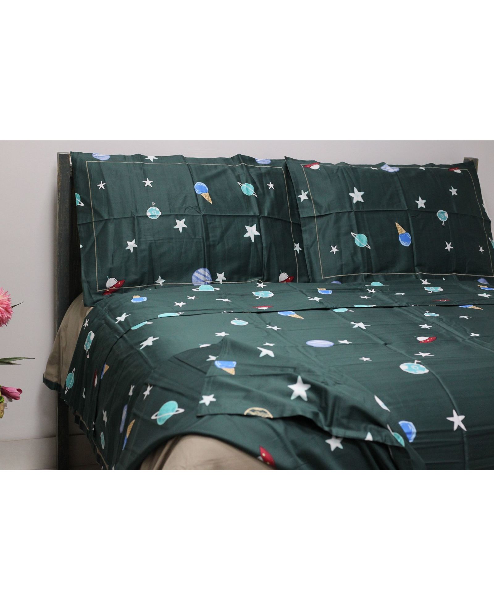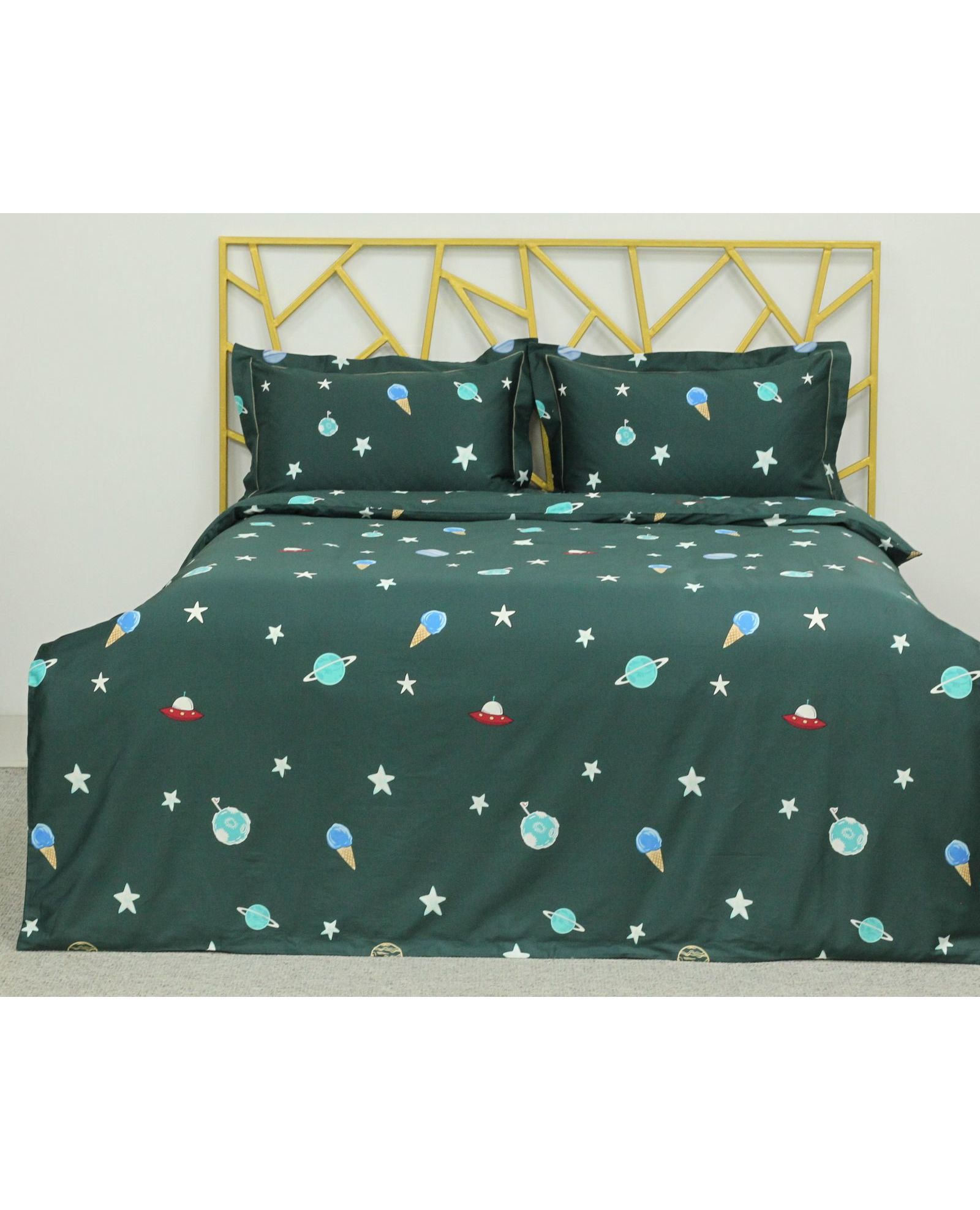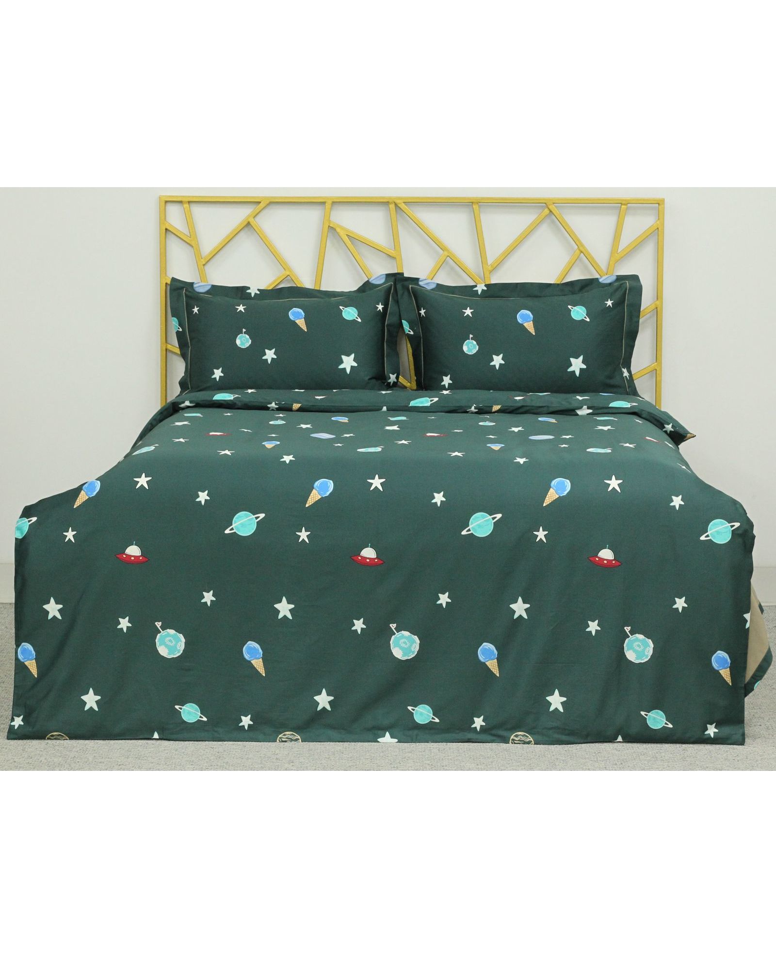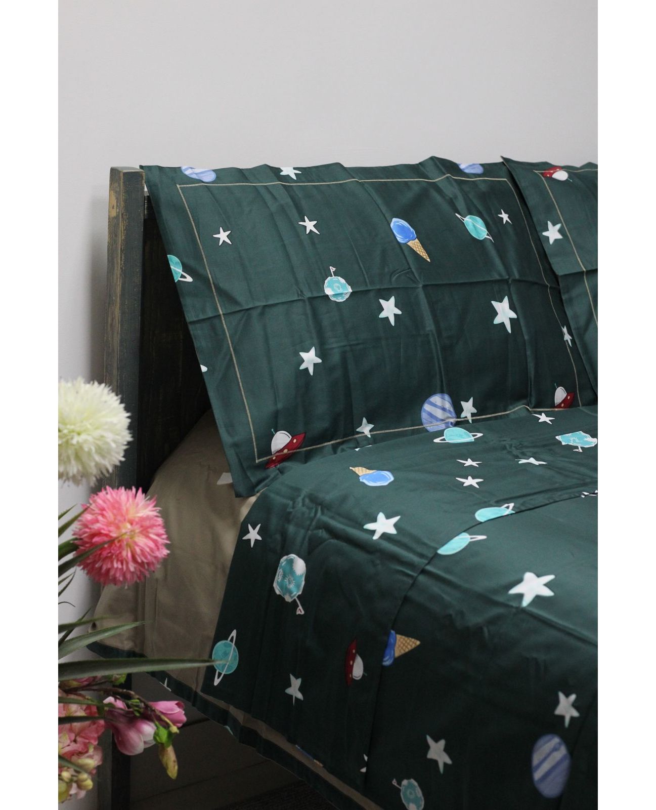 Комплект постільної білизни зелено-бежевий з оригінальним принтом 200х230 см