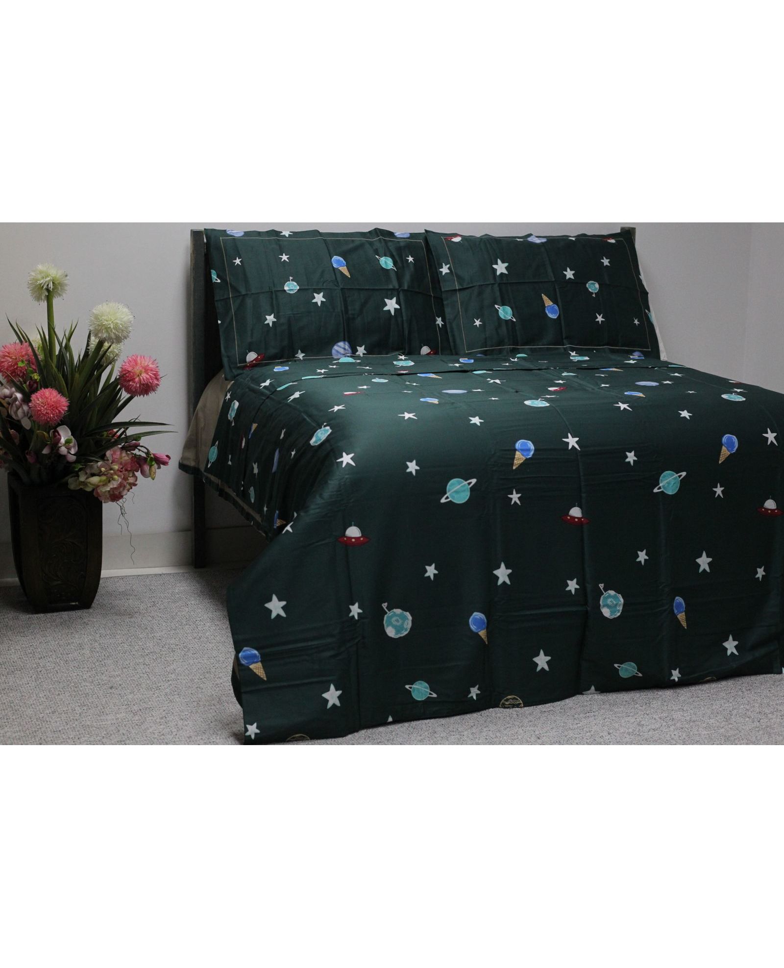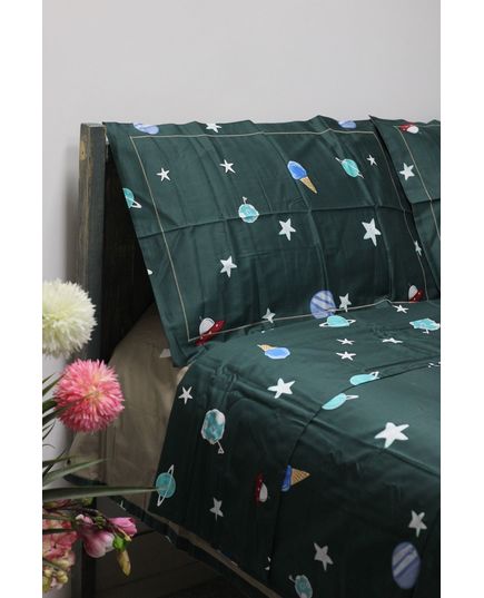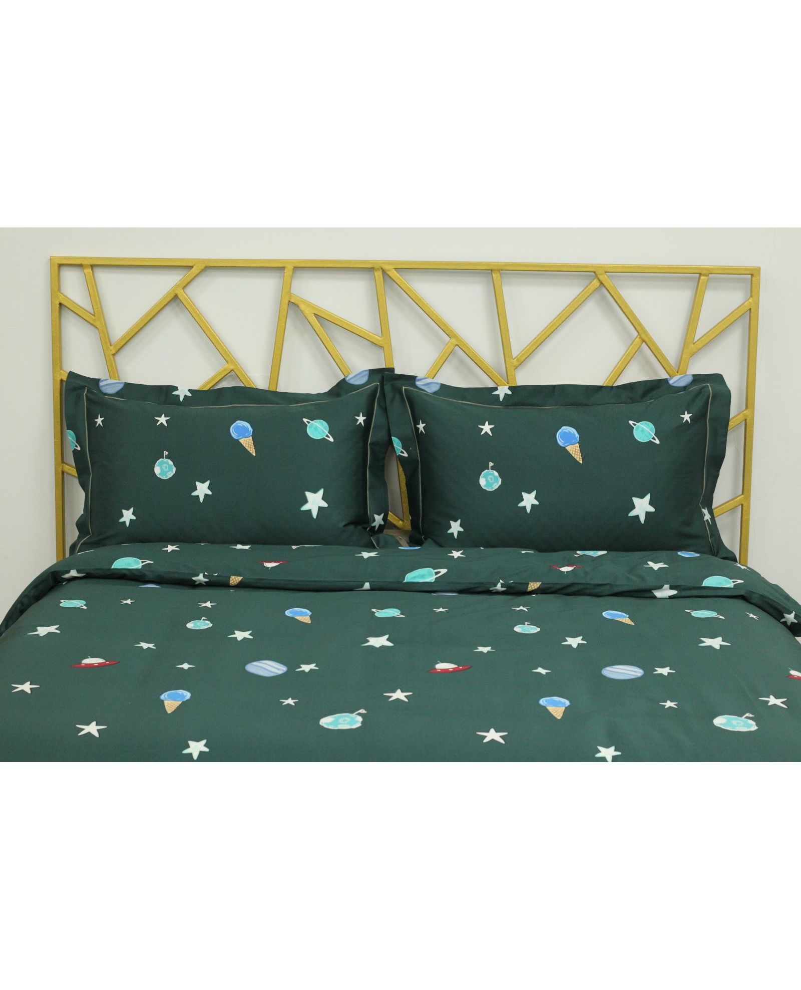 Стильний комплект постільної білизни з 100% єгипетської бавовни приємно вражає поєднанням зеленого та бежевого кольорів із нестандартним дизайнерським принтом. Натуральна тканина дарує м’якість, комфорт і довговічність.