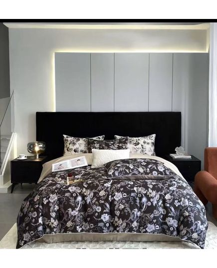 Комплект постільної білизни MOOBAYOU чорний з сірим та квітковим візерунком