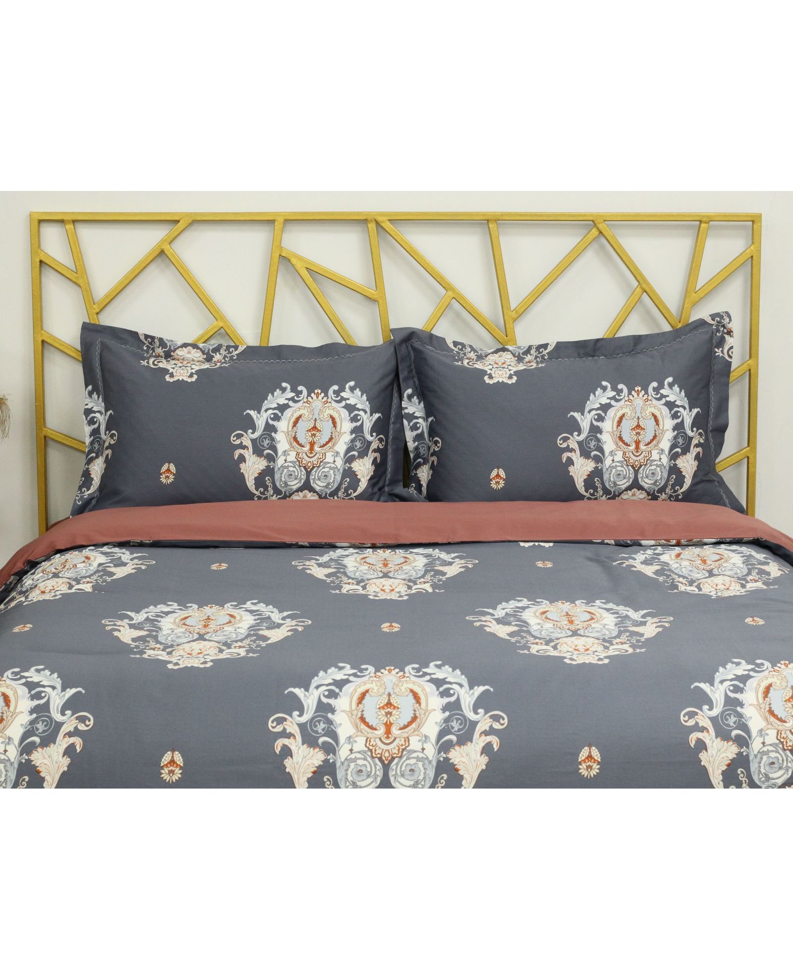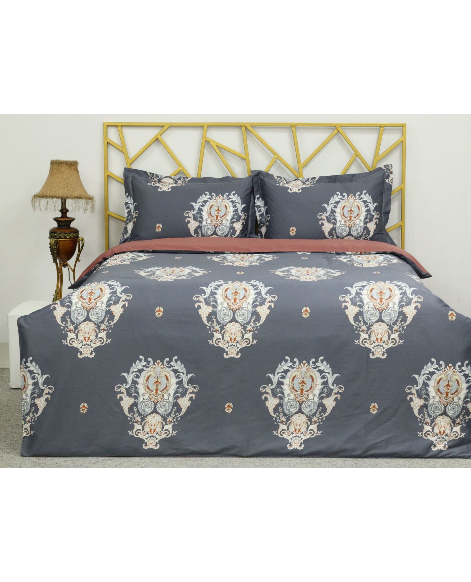 Комплект постільної білизни сірий із вишневим візерунком 200х230 см