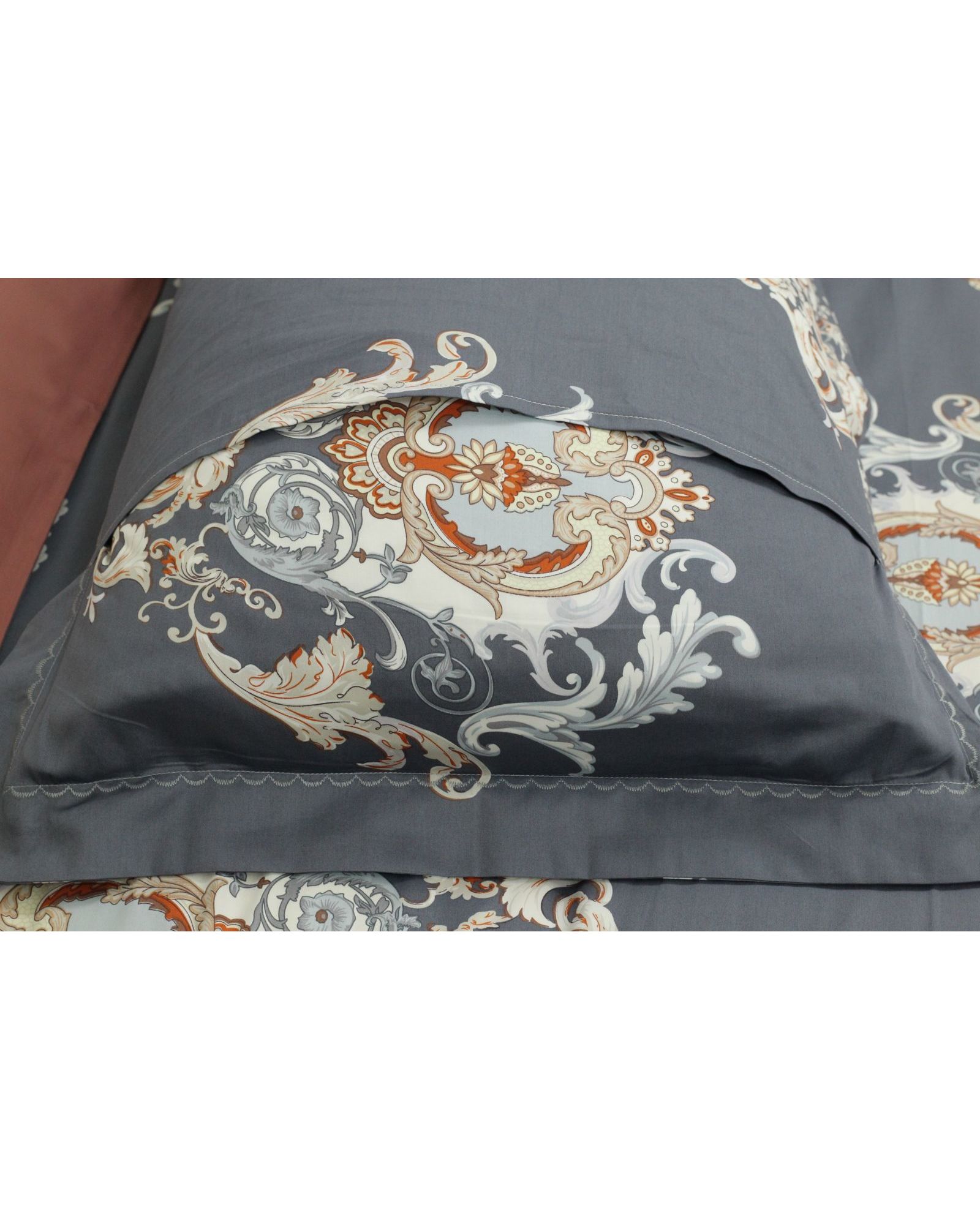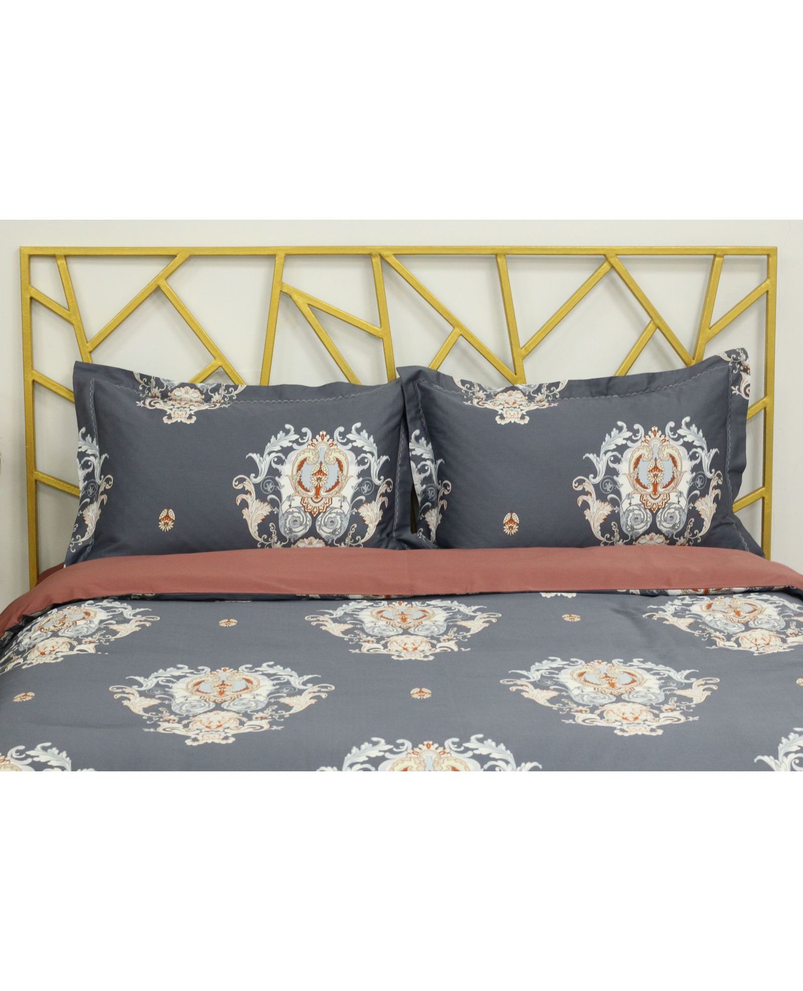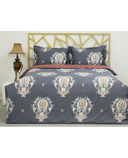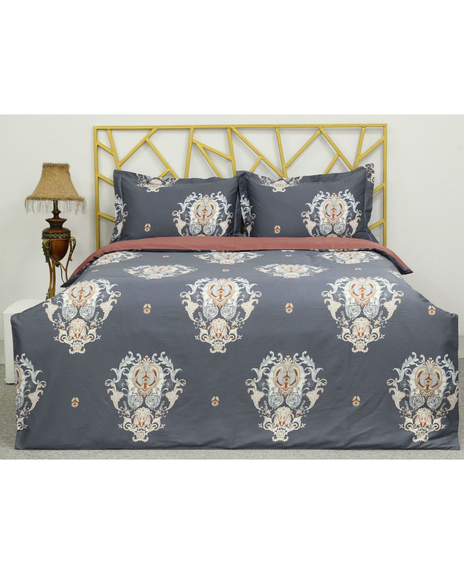 Елегантний комплект постільної білизни з 100% єгипетської бавовни забезпечує винятковий комфорт і довговічність. Поєднання сірого фону з вишневим візерунком створює вишукану атмосферу та стильний акцент у спальні.