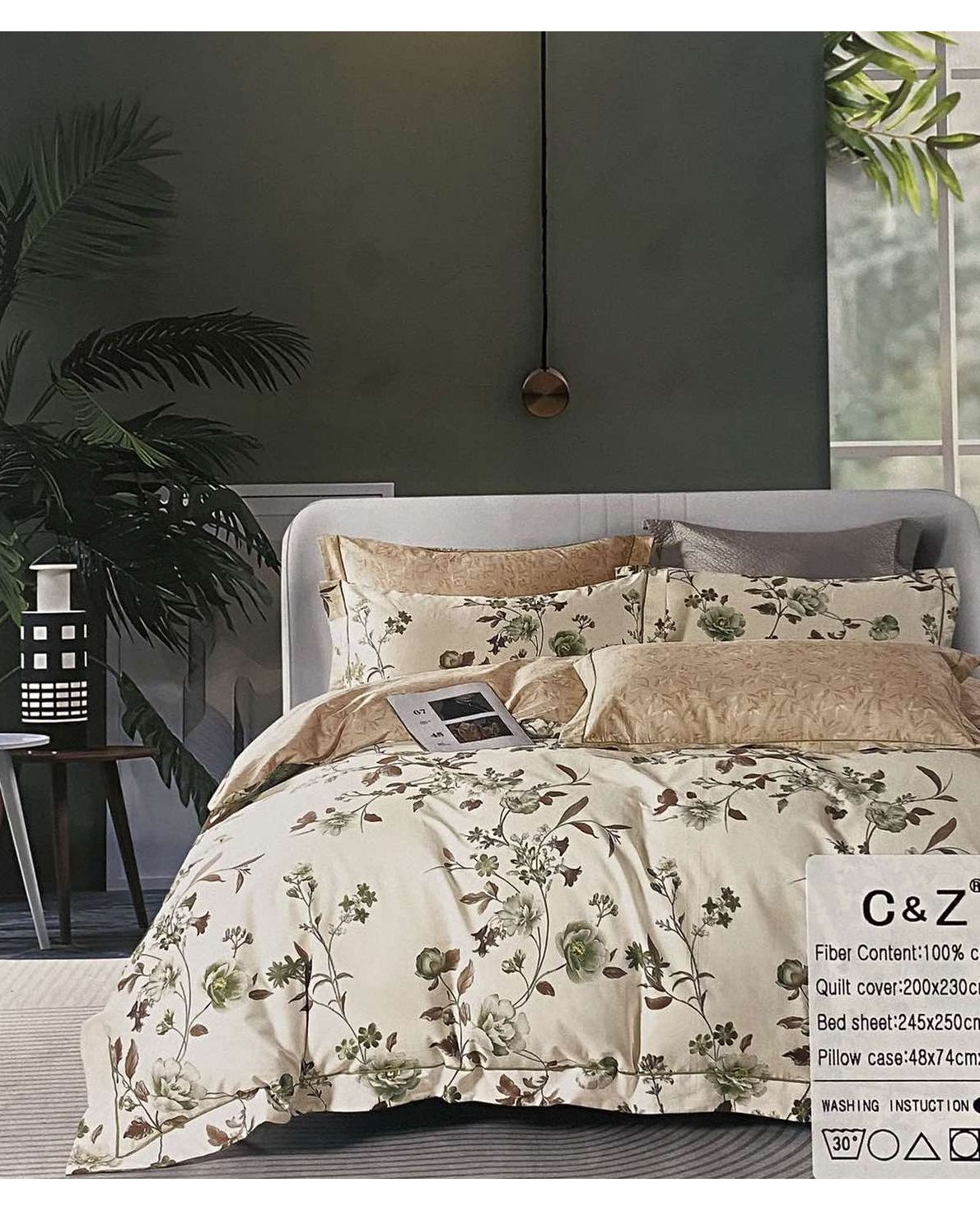 Вишуканий комплект у бежевих тонах із квітковим візерунком надає інтер’єру м’якості та природної гармонії. Натуральний сатин дарує приємні відчуття на дотик та забезпечує комфорт під час сну.