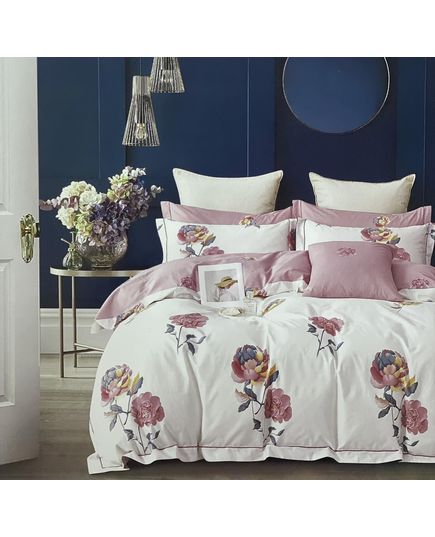Ніжна кольорова гама у рожевих і білих відтінках із квітковим малюнком наповнює спальню легкістю та романтикою. Сатин забезпечує м’якість, гладкість і комфорт на кожен день.