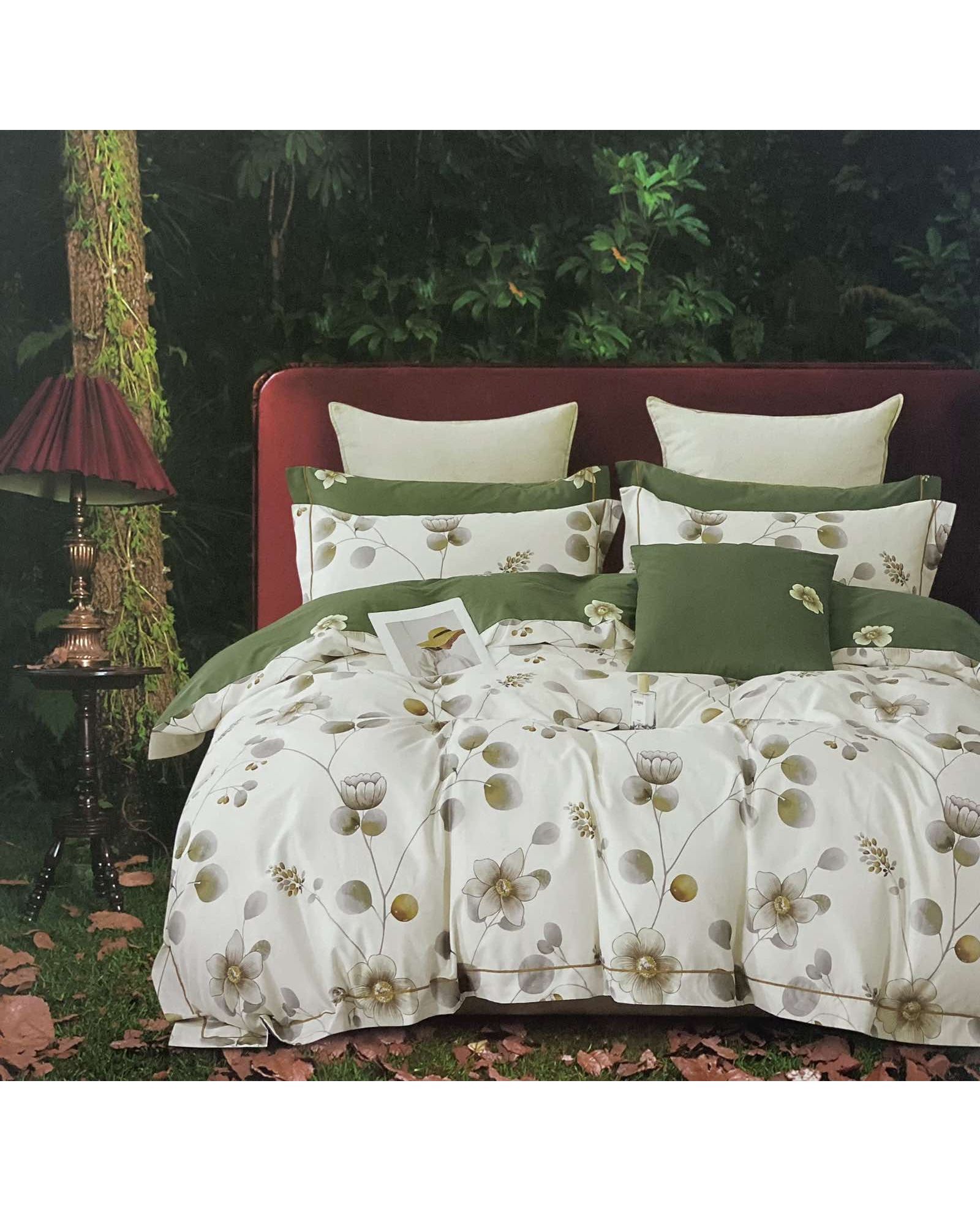 Комплект постільної білизни із сатину зеленого кольору з білим квітковим візерунком