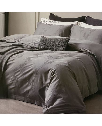 Сірий колір із витонченим жаккардовим візерунком створює спокійну й елегантну атмосферу у вашій спальні. Натуральна бавовна забезпечує комфортний мікроклімат, м’якість і приємні тактильні відчуття протягом ночі.