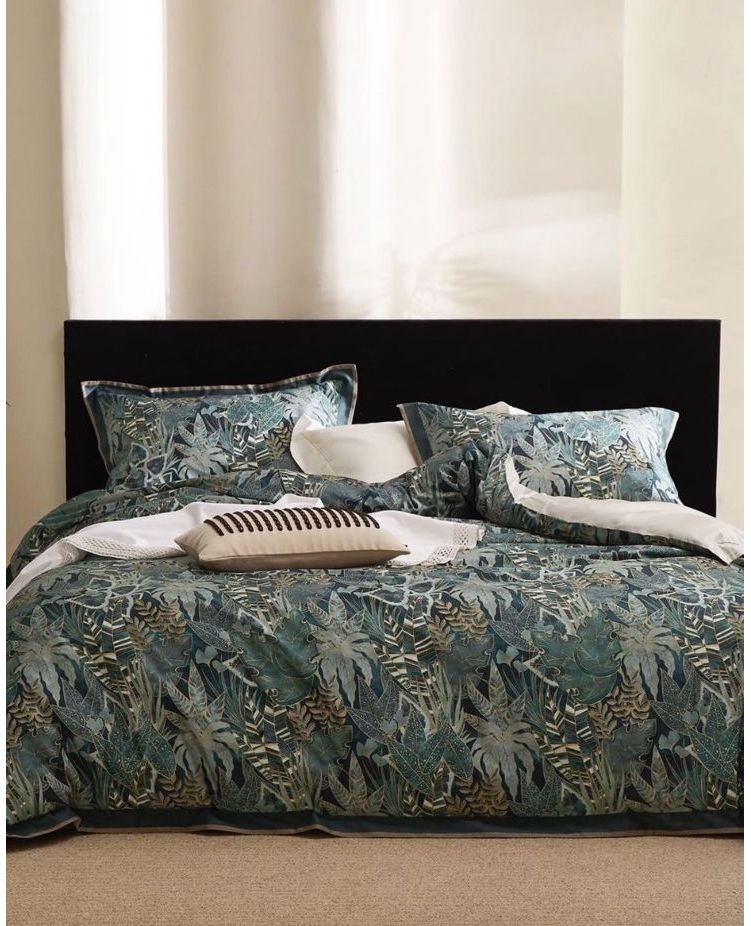 Контраст гірчичного та смарагдового відтінків у поєднанні з вишуканим рослинним візерунком створює неповторний стиль. Преміум сатин дарує м’якість, блиск і комфорт протягом усього сну.