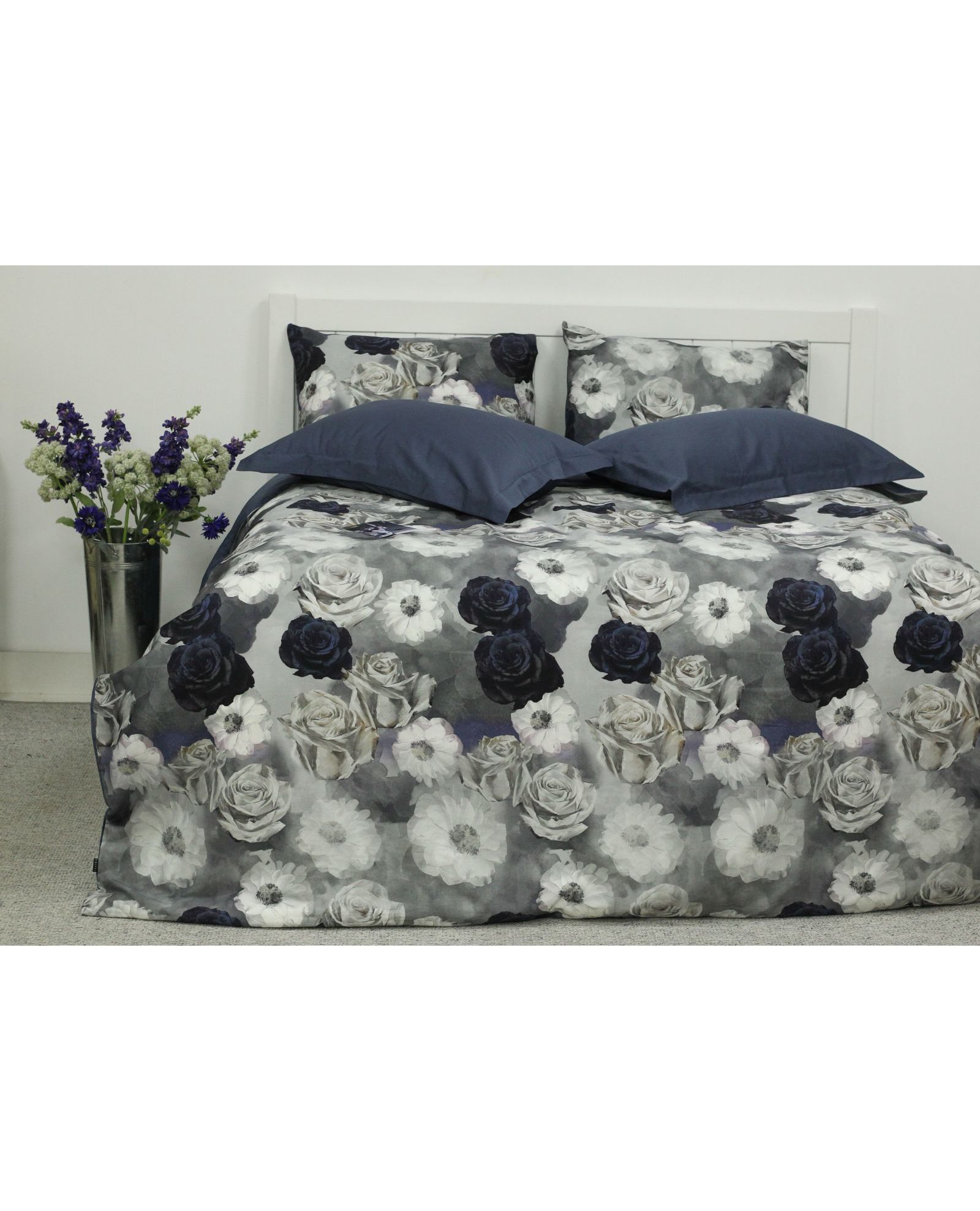 Розкішний комплект білизни від турецького бренду ISSIMO поєднує глибокий синій колір із ніжними сірими відтінками та вишуканим об’ємним квітковим візерунком. Натуральний сатин дарує м’якість, блиск і довговічність.