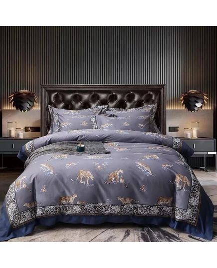 Комплект постільної білизни сірий з леопардами