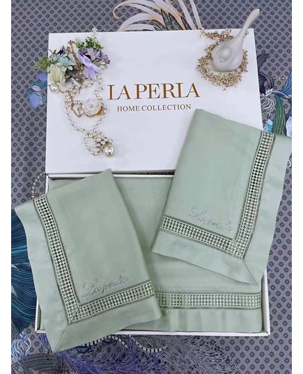 Комплект постільної білизни з підковдрою 200х230 см, простирадлом 250х250 см та двома наволочками 50х70 см у ніжному м’ятному кольорі оздоблений вишуканим мереживом по краях. Натуральний тенсел 100% забезпечує виняткову м’якість, гіпоалергенність і комфорт під час сну.