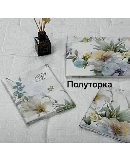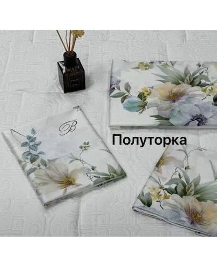 Літній комплект постільної білизни білого кольору з зеленим і квітковим візерунком від Blumarine (Італія)