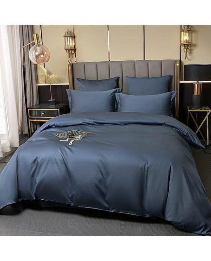 Сімейний комплект постільної білизни синього кольору створений для затишку та комфорту у вашій спальні. Поєднання бавовни та бамбука робить тканину приємною на дотик, міцною та повітропроникною, що забезпечує комфортний сон.