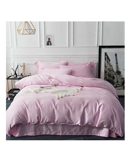 Сімейний комплект постільної білизни в ніжному рожевому кольорі поєднує комфорт, природність і естетику. Натуральна тканина з бамбуковим волокном забезпечує м’якість, повітропроникність і гіпоалергенність — ідеальний вибір для щоденного користування.