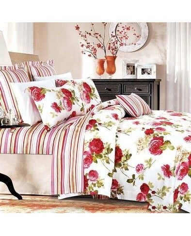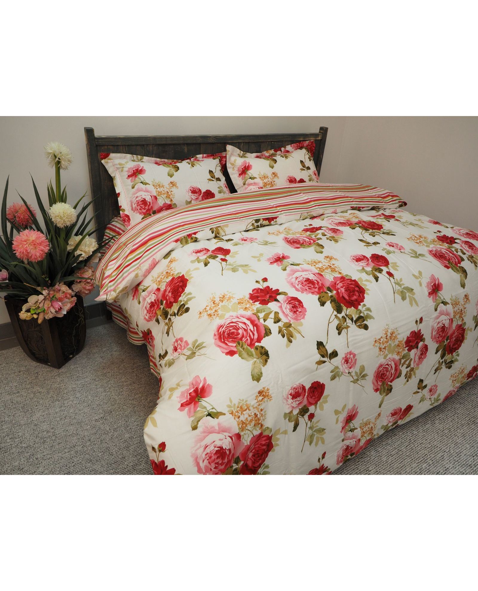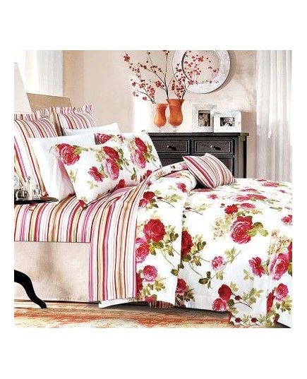 Сімейний комплект постільної білизни білого кольору з ніжним квітковим принтом додає спальні атмосфери затишку й легкості. Виготовлений зі 100% бавовни, він приємний на дотик та ідеально підходить для щоденного використання.