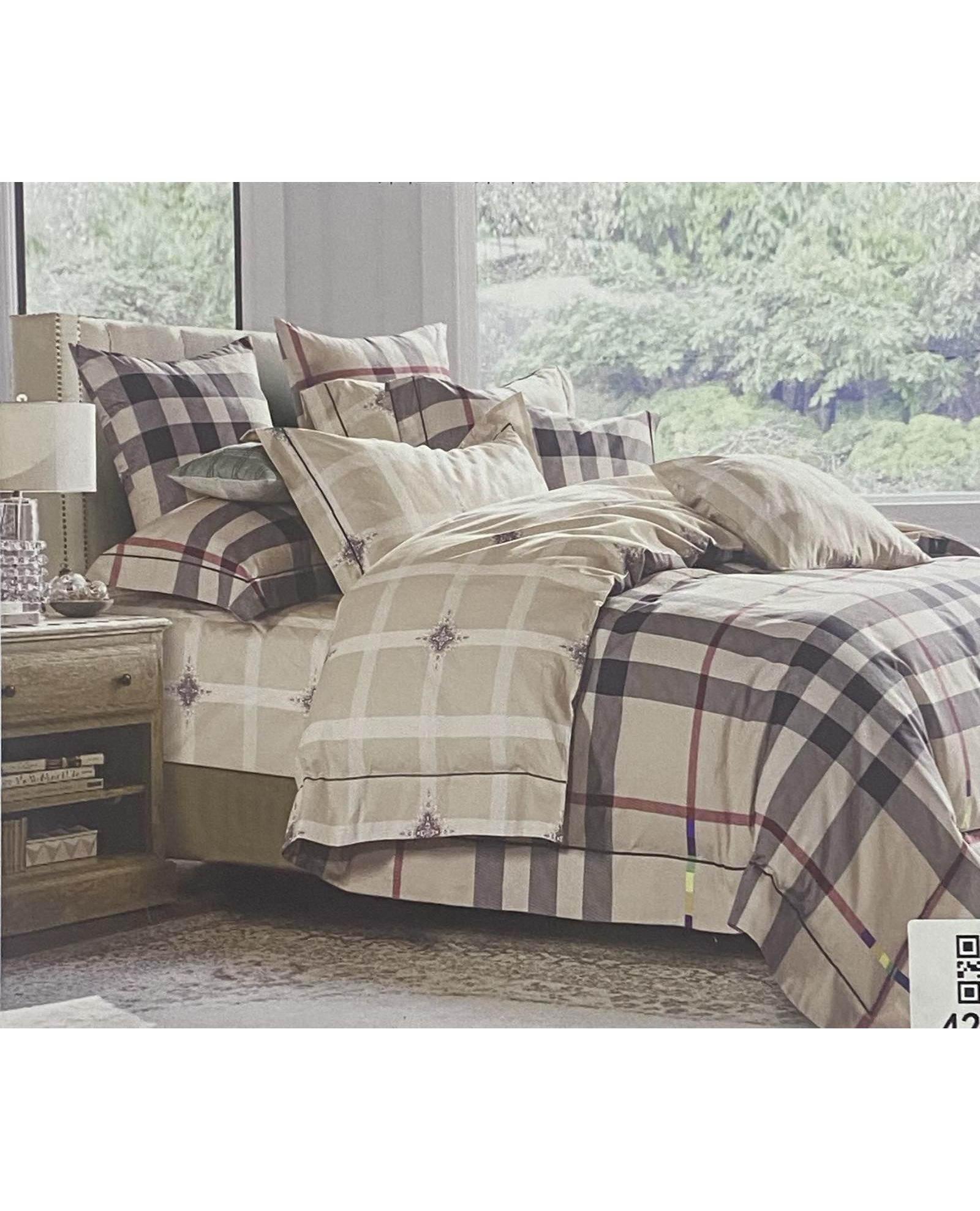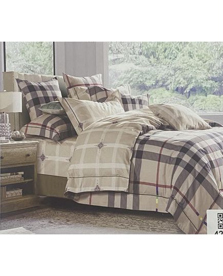 Комплект постільної сімейної білизни бежевого кольору в клітинку