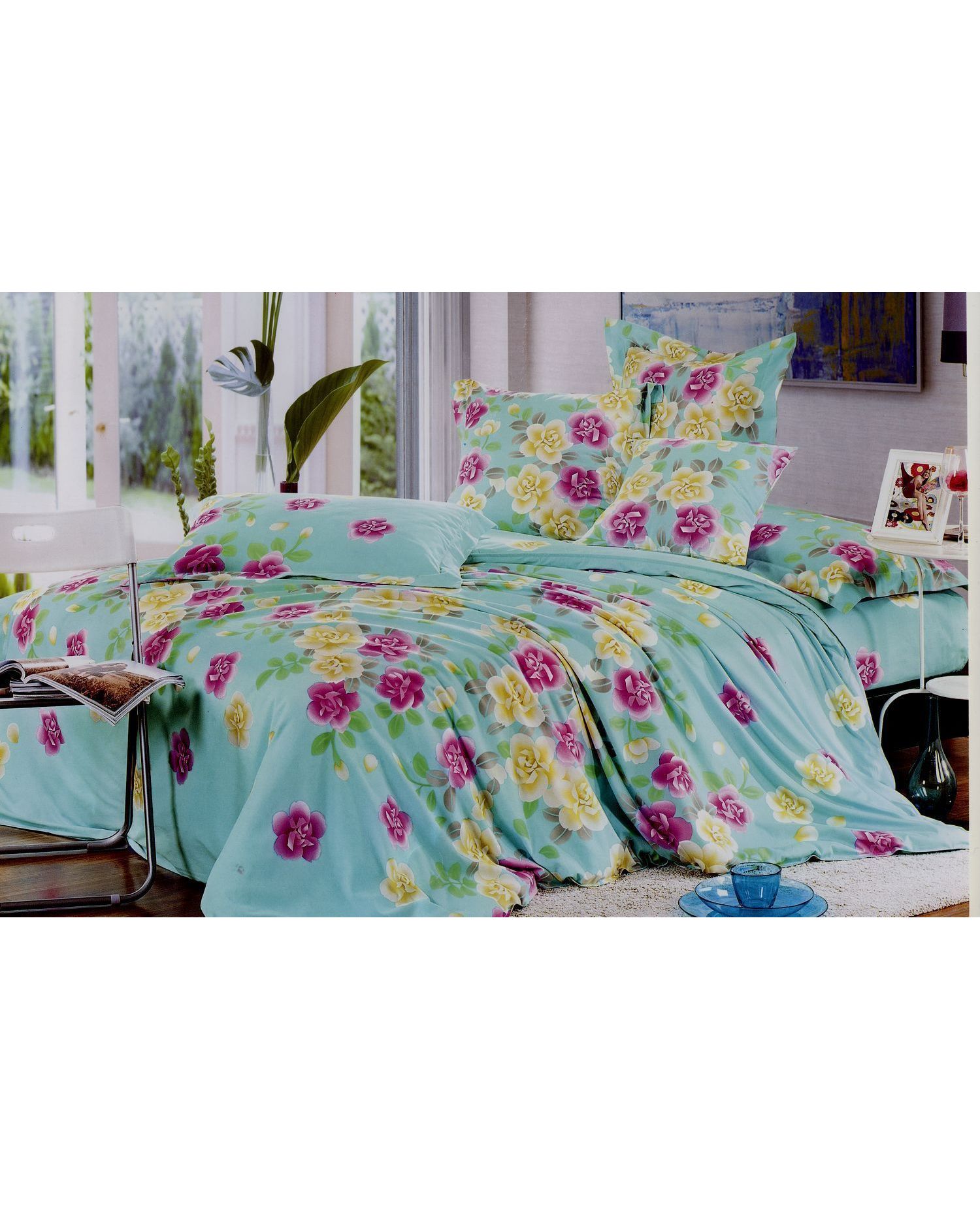 Сімейний комплект постільної білизни у свіжому ментоловому кольорі з ніжним квітковим принтом стане гармонійним акцентом спальні. Натуральна бавовна забезпечує м’якість та комфорт протягом усього сну.