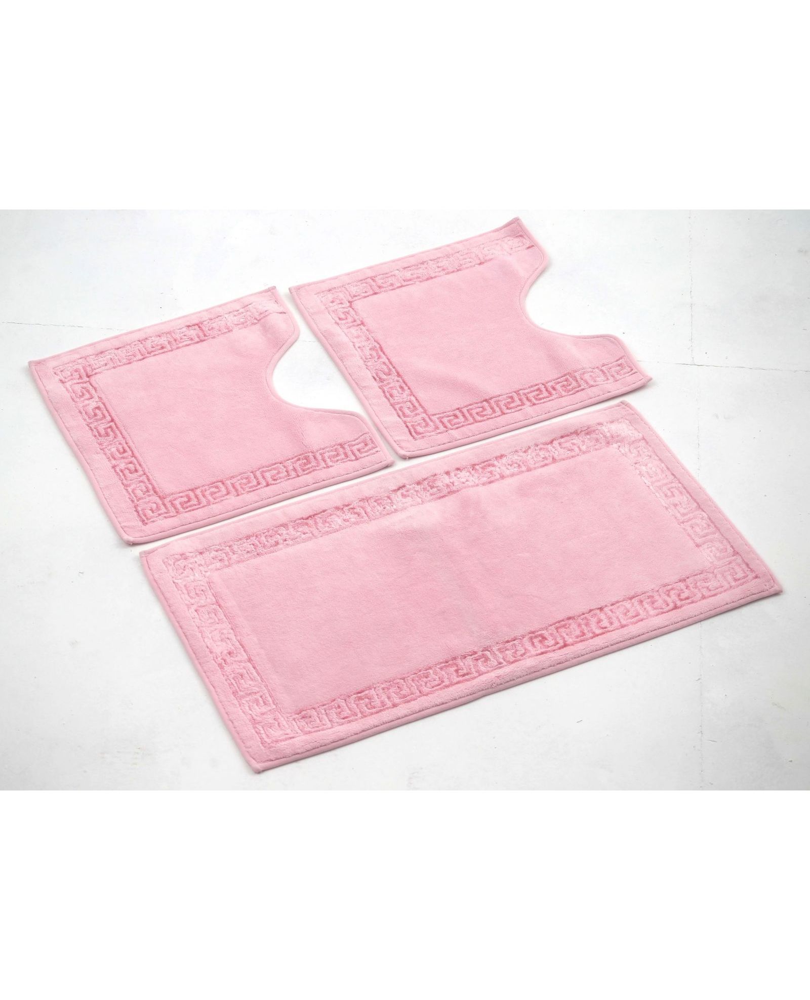Функціональний і приємний на дотик набір з трьох килимків — один розміром 90×50 см і два по 48×50 см. Ідеально підходить для облаштування зони біля ванни, раковини чи унітазу. Виготовлений зі 100% бавовни — м’який, зносостійкий та добре вбирає вологу. У наявності представлені різні кольори, що дозволяє легко підібрати комплект під ваш інтер’єр.