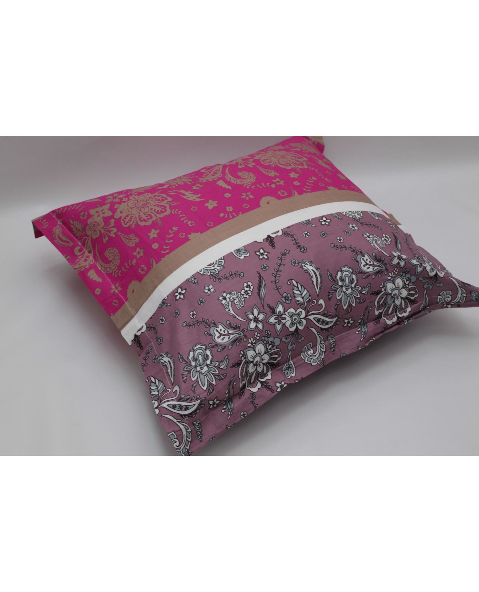Наволочка 70×70 см рожево-бузкового кольору з квітковим візерунком, 100% бавовна