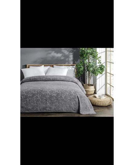 Це стильне махрове покривало кольору графіт додасть елегантності вашій спальні. Завдяки 100% бавовні, воно забезпечує м'якість і комфорт протягом усього року. Об'ємний візерунок підкреслює розкішний вигляд покривала, що робить його ідеальним вибором для будь-якого інтер'єру.