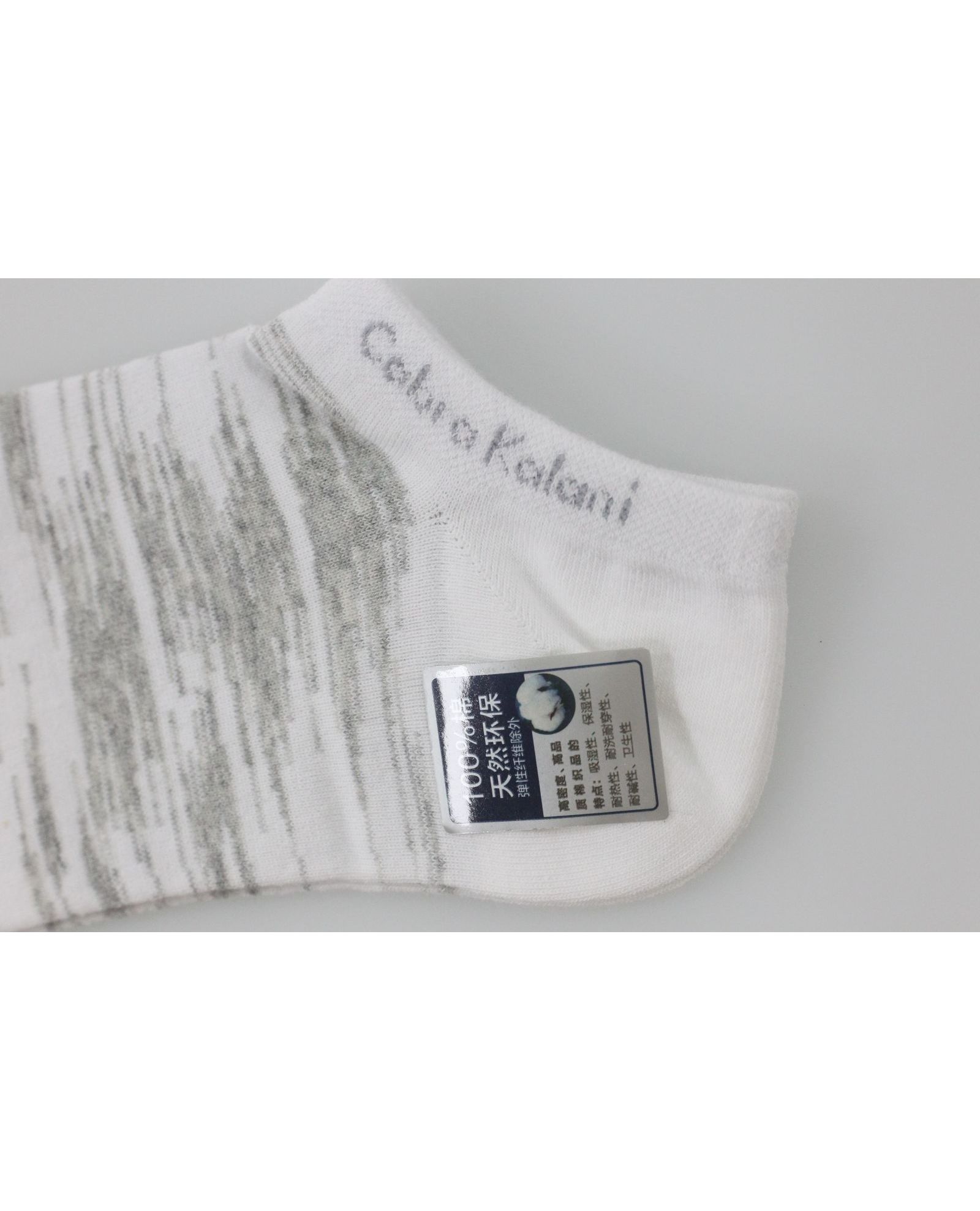 Короткі чоловічі шкарпетки білого кольору з сірим акцентом, розмір 41-45. Забезпечують комфорт і приємні відчуття на нозі протягом усього дня.