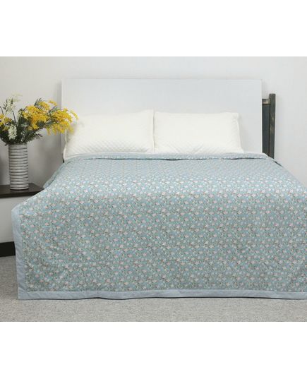 Легка літня ковдра з квітковим візерунком 200×230 см, блакитна