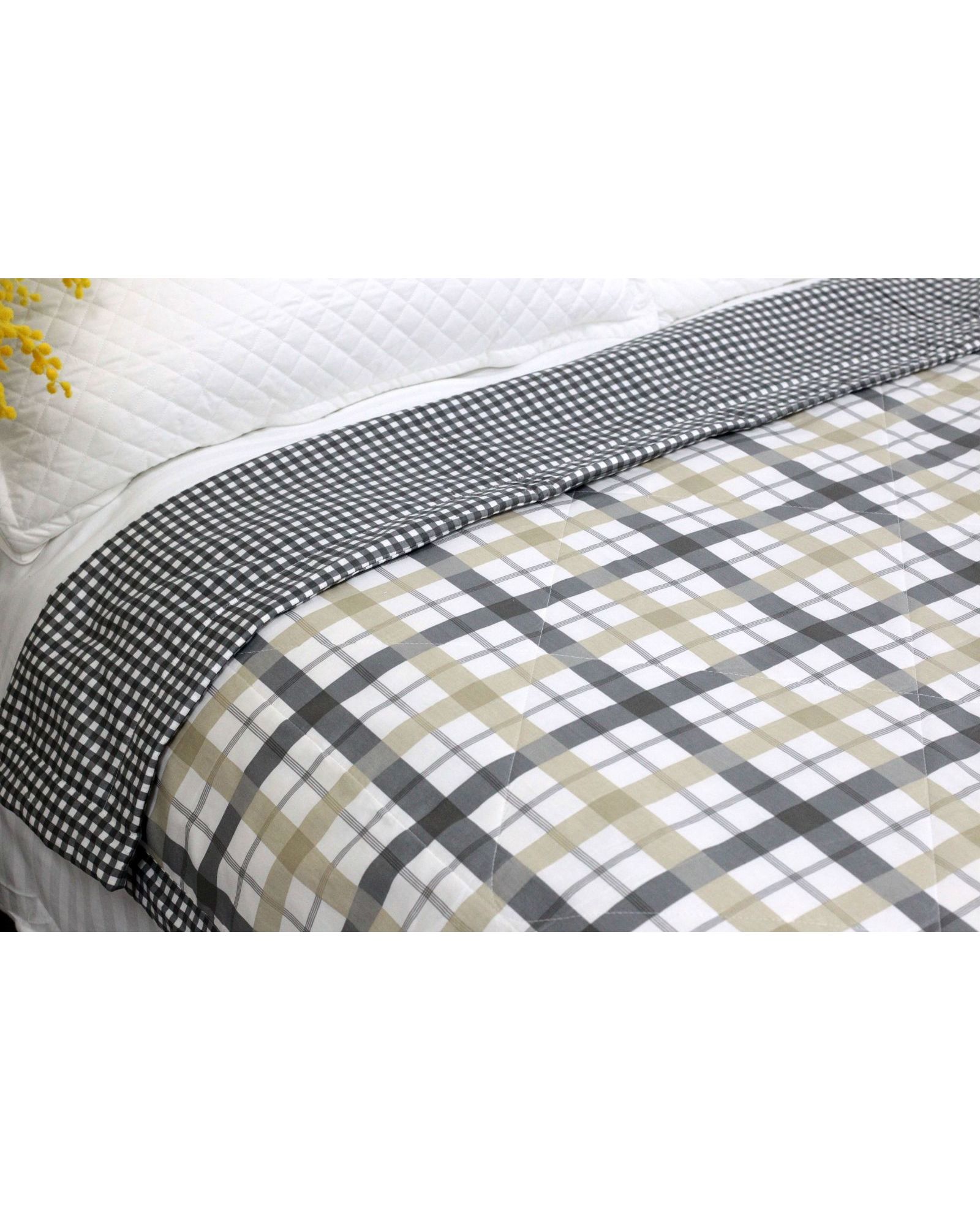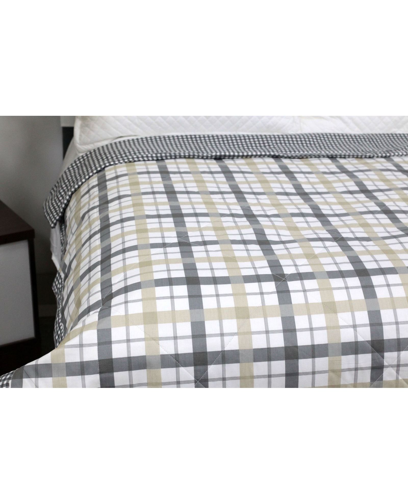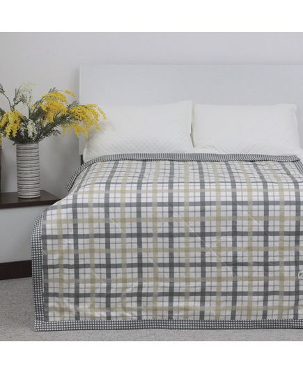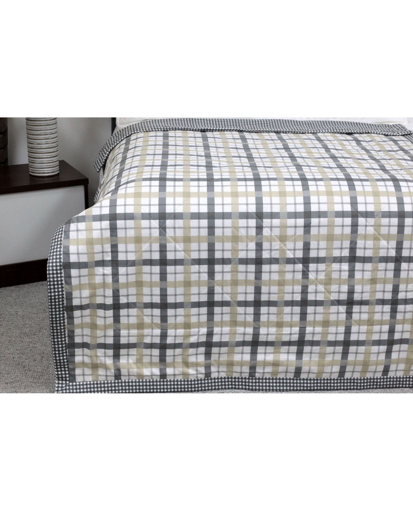 Легка літня ковдра в клітинку 200×230 см, сіра