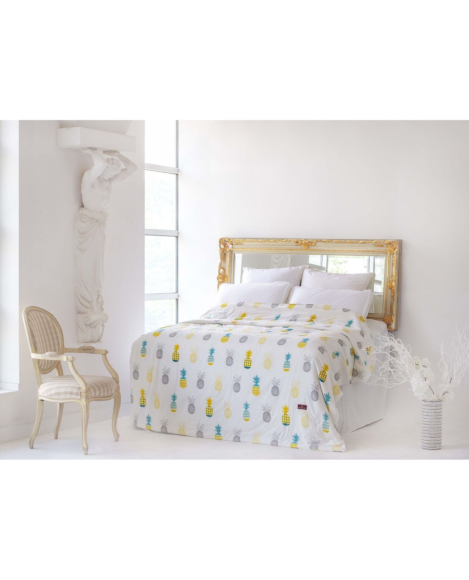 Літня ковдра 200×230 см білого кольору з ананасами