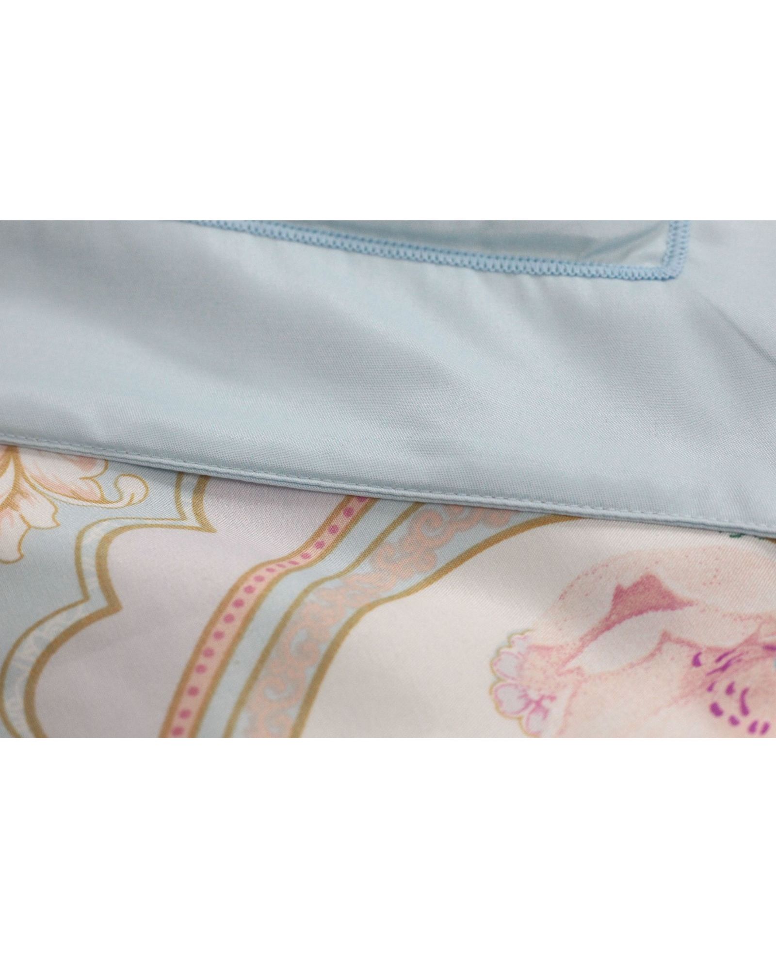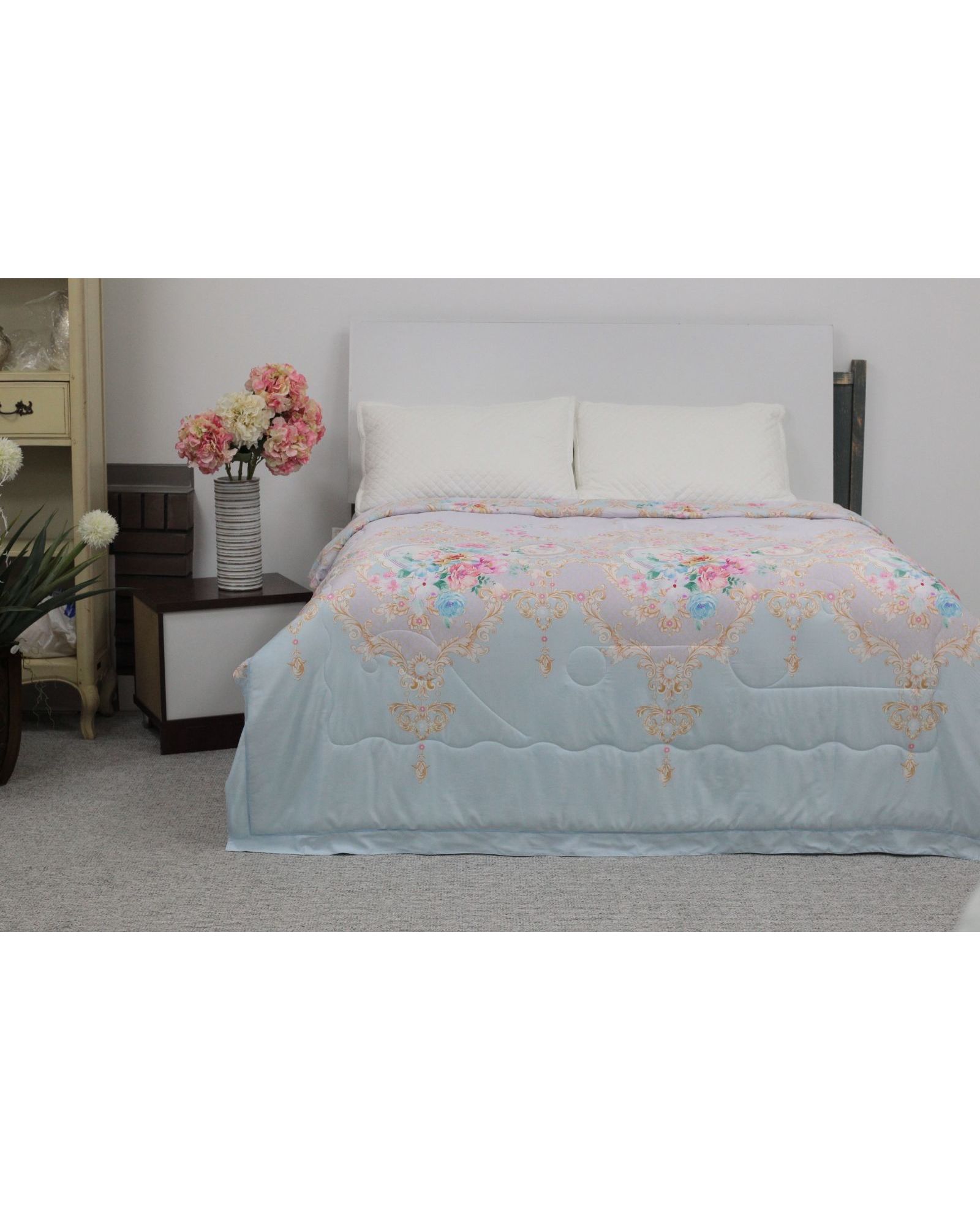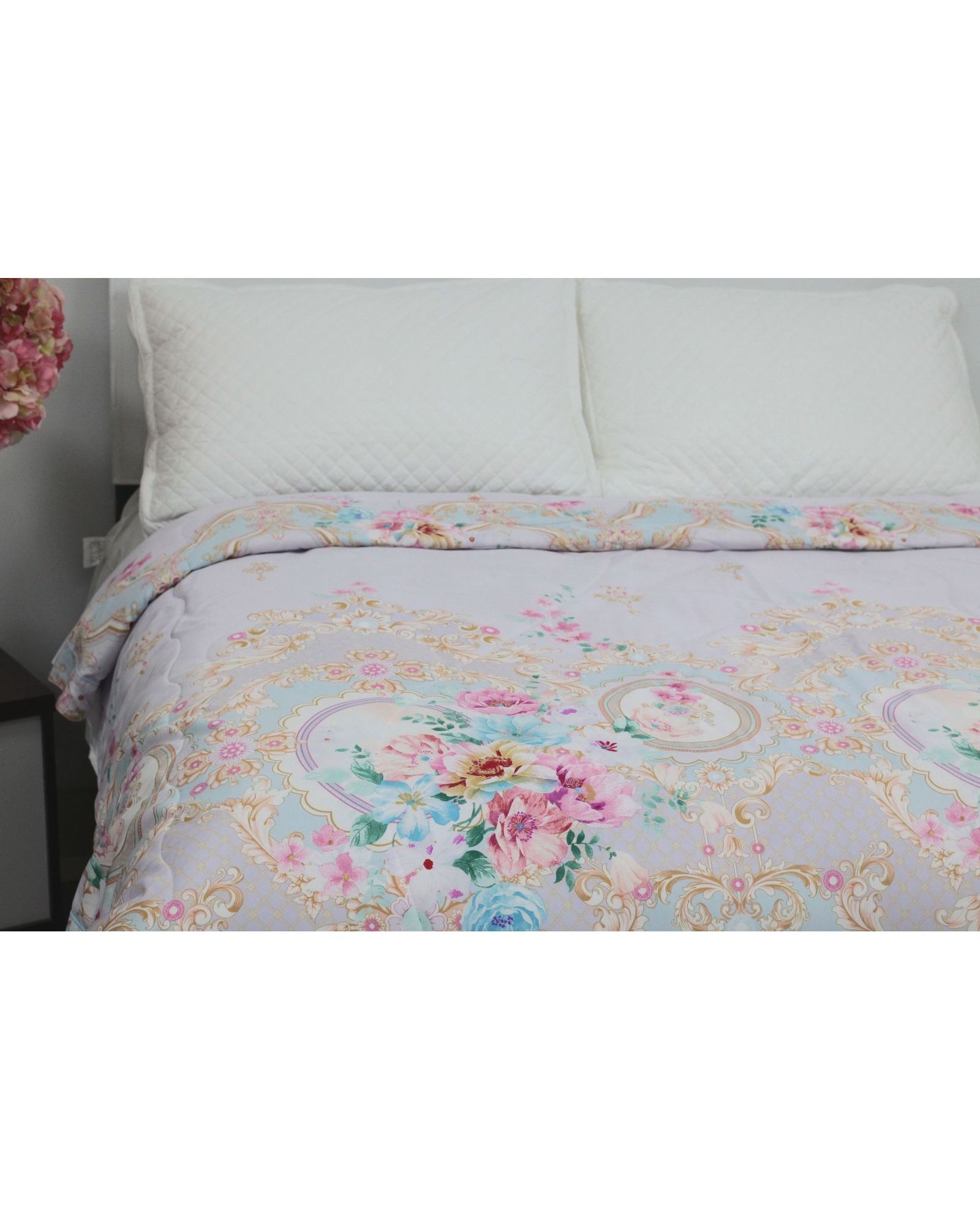 Ця стьобана літня ковдра у ніжних блакитно-рожевих тонах з квітковим принтом створена для вашого затишку в теплу пору року. Натуральний верх із ліоцеллу забезпечує приємні відчуття на дотик, а легкий наповнювач з мікрофібри – комфортну терморегуляцію.