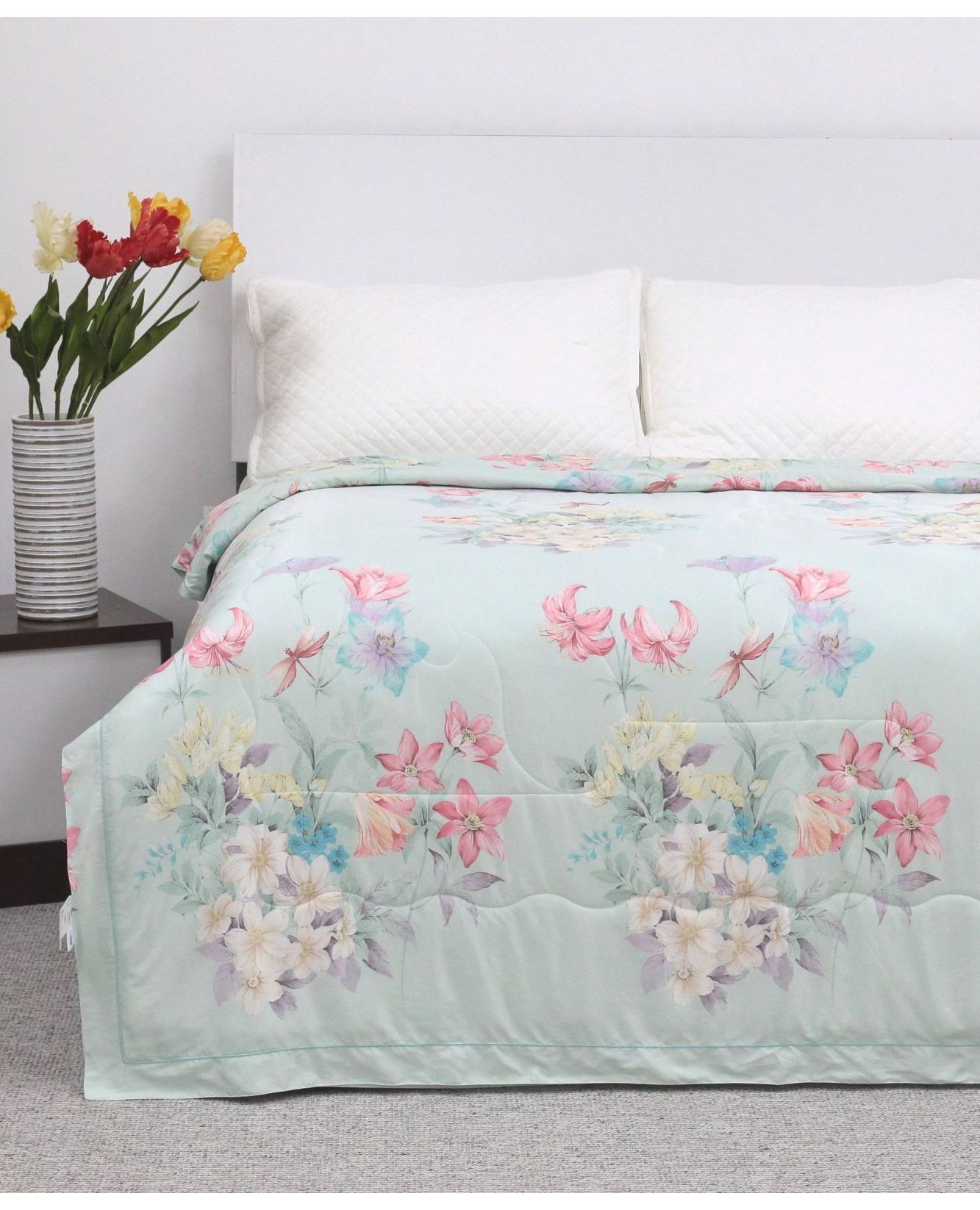 Ця легка ковдра поєднує ніжний квітковий дизайн із якісними матеріалами. Біло-блакитні відтінки створюють атмосферу спокою та свіжості, а дихаючий ліоцелл та мікрофібра забезпечують комфорт у теплі ночі.