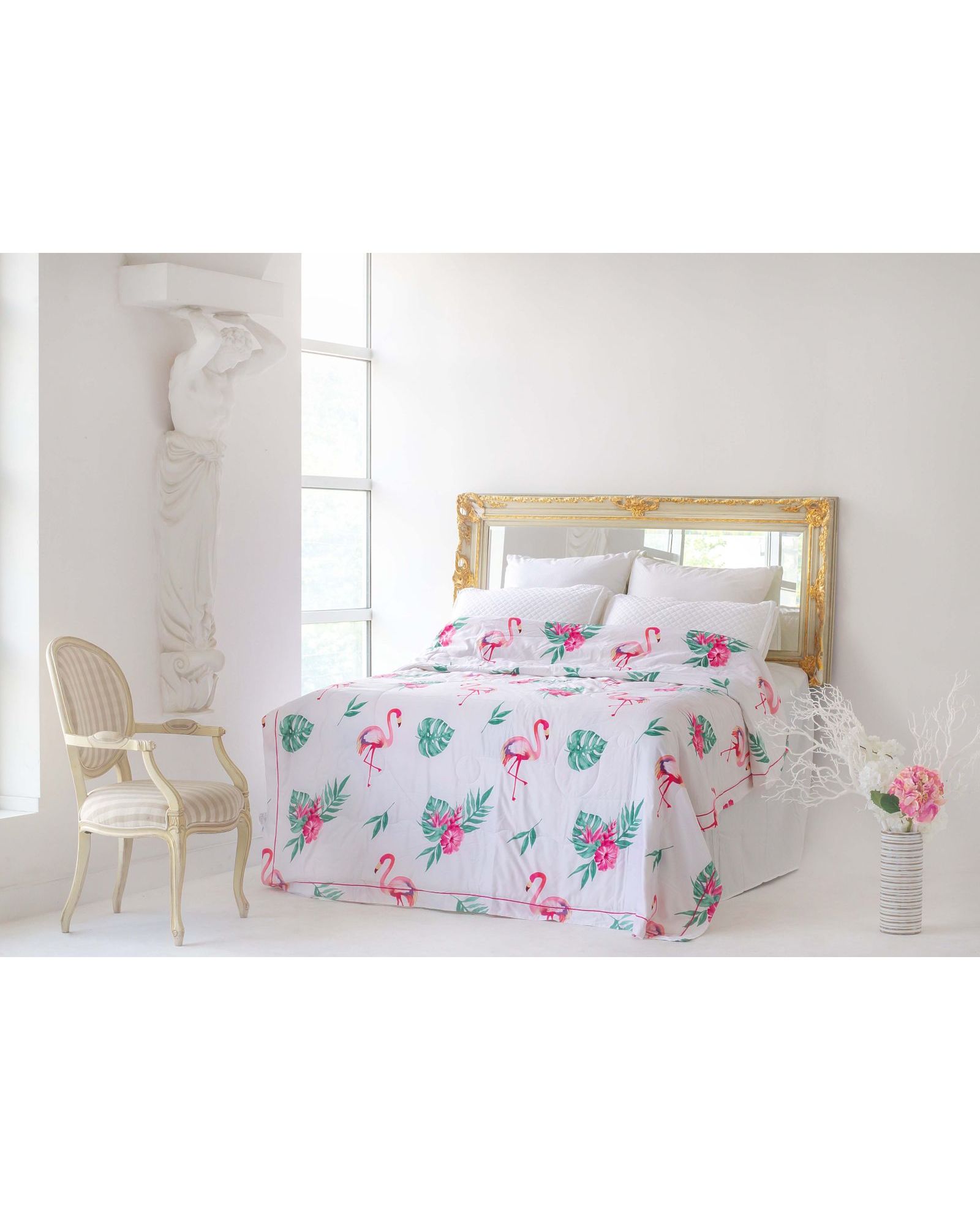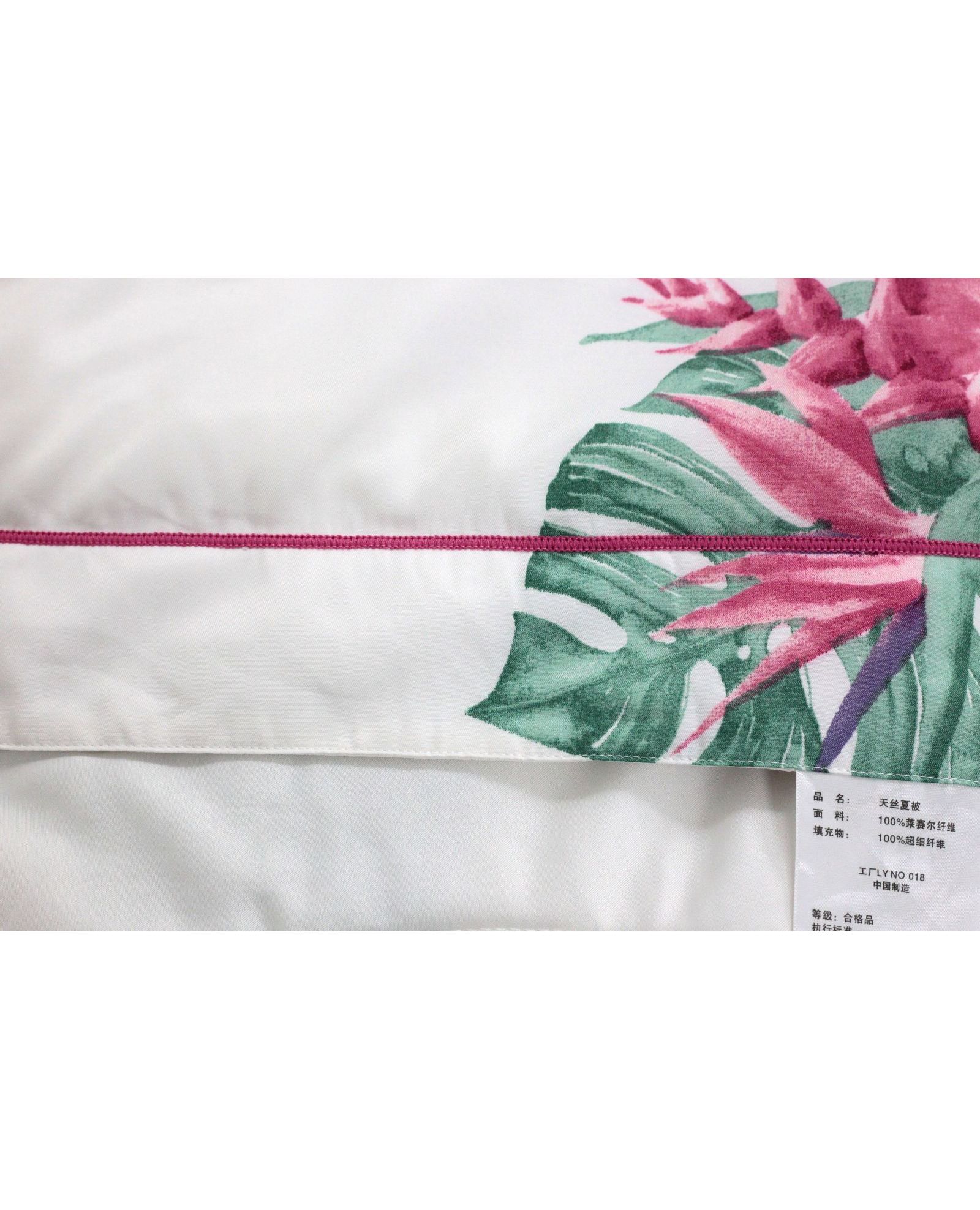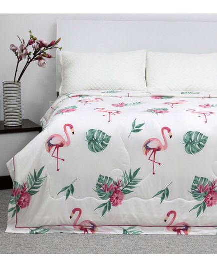 Ця легка ковдра в біло-рожевій палітрі з оригінальним зображенням флаінго додасть вашій спальні свіжості та унікальності. Натуральний ліоцелл у поєднанні з мікрофіброю створює ідеальні умови для комфортного сну влітку.