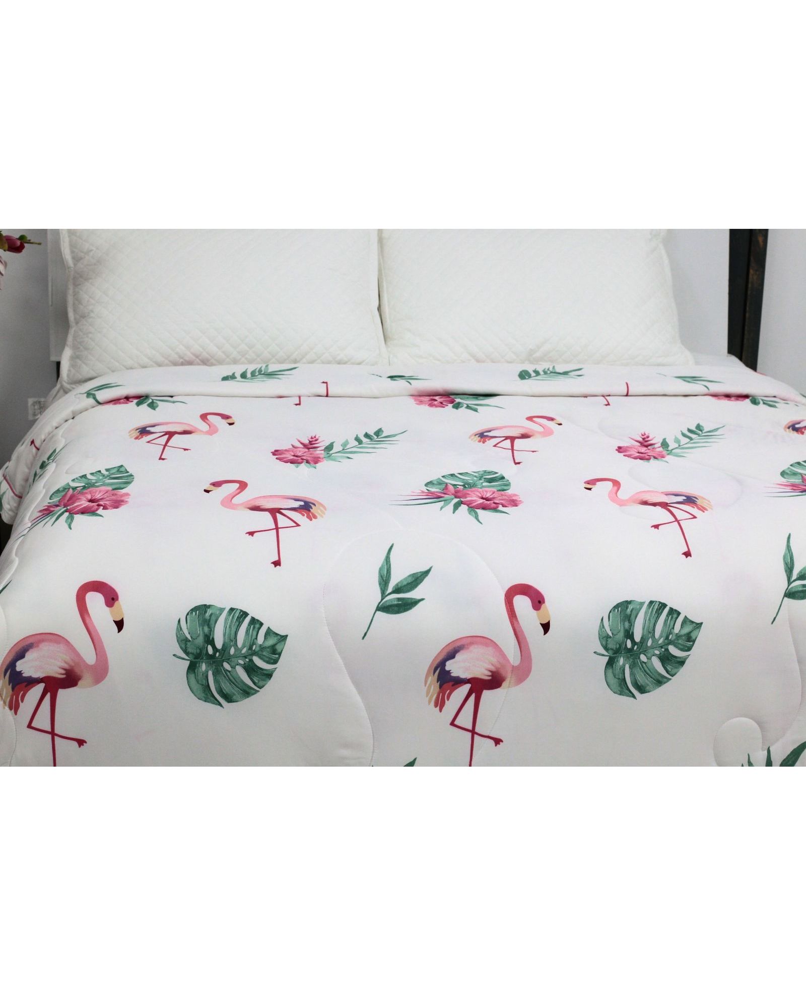 Літня ковдра біло-рожевого кольору з принтом фламінго 150×200 см – стильний акцент для вашого інтер’єру