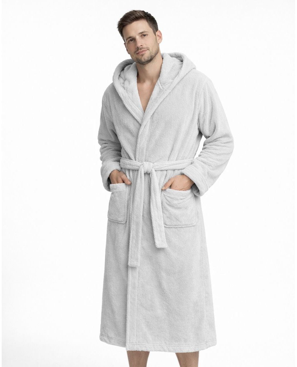 Практичний та стильний чоловічий халат, ідеальний для щоденного використання після душу, ванни або сауни. Натуральна махрова тканина зі 100% бавовни м’яка, приємна до тіла, добре вбирає вологу та забезпечує комфорт у будь-яку пору року. Капюшон додає затишку й робить модель ще зручнішою для домашнього відпочинку.