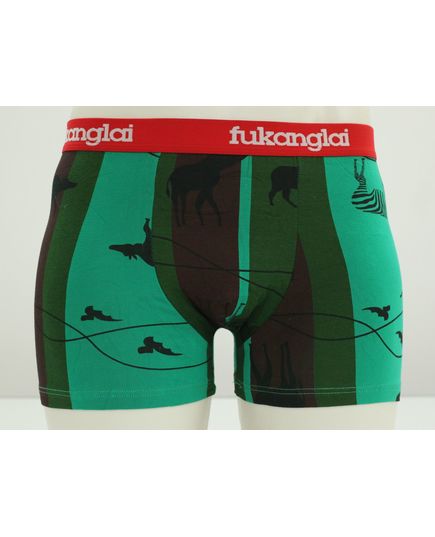 Стильний комплект чоловічих боксерів у насиченому зеленому кольорі з привабливим принтом тварин. М’яка бавовняна тканина та широка резинка забезпечують комфорт протягом усього дня. Ідеальний вибір для щоденного використання.