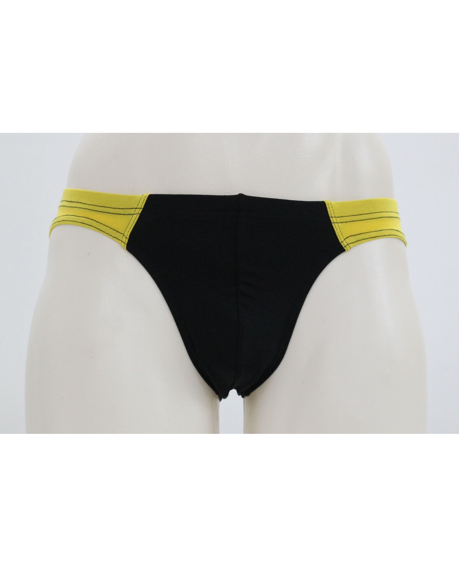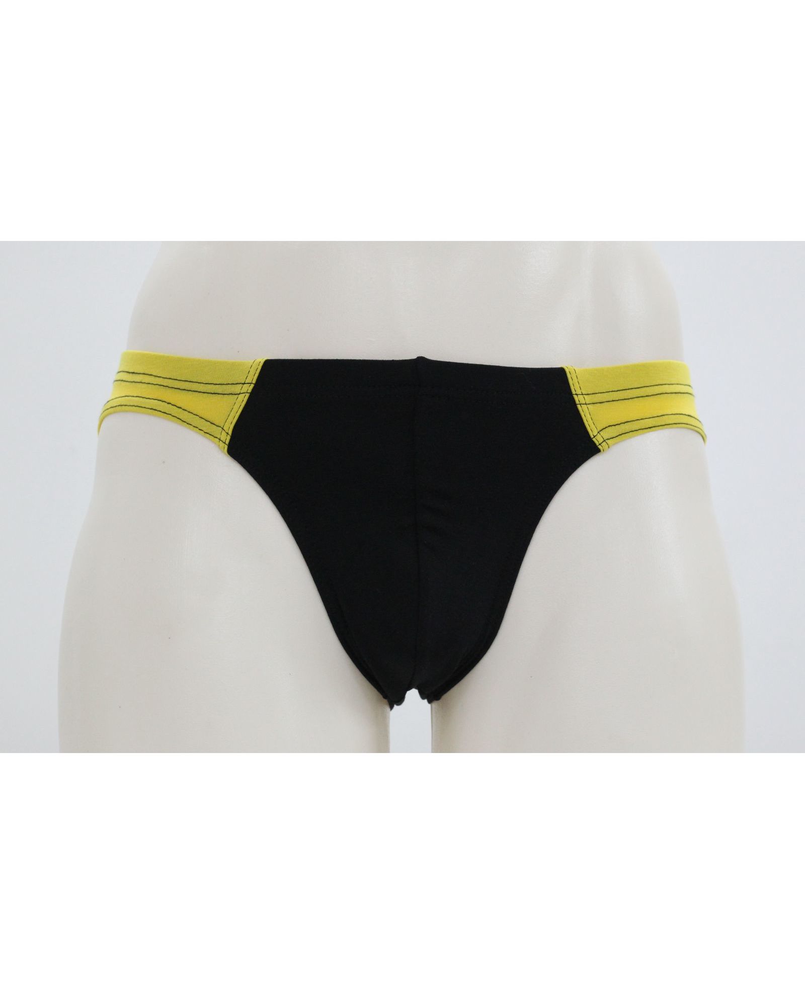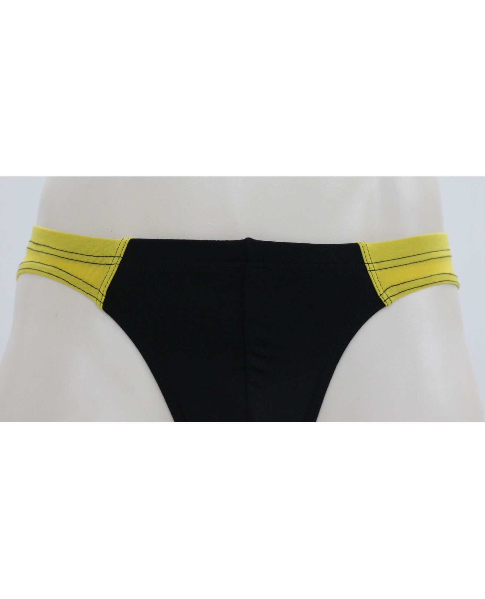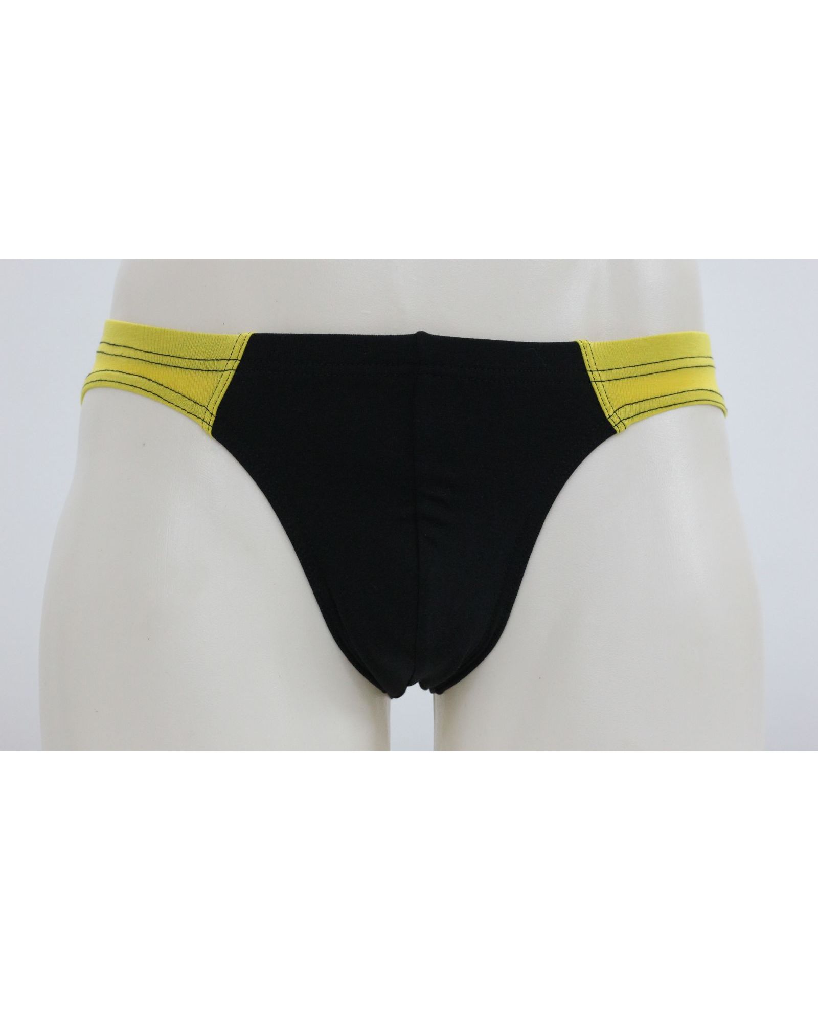 Стильні чоловічі плавки поєднують комфорт і сучасний дизайн. М’яка тканина з бавовни, модалу та лайкри приємна до тіла, забезпечує еластичність і зручну посадку. Контрастне поєднання чорного та жовтого кольорів надає виробу яскравого вигляду.
