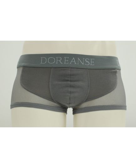 Чоловічі боксери сірого кольору з короткою довжиною та сіткою по боках забезпечують комфорт і вентиляцію протягом усього дня. Ідеальний вибір для щоденного носіння та активного відпочинку.
