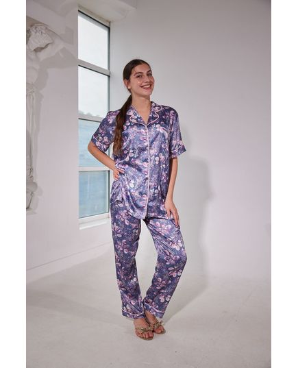 Домашний костюм рубашка+штаны. Рубашка с коротким рукавом на пуговицах с цветочным принтом. Штаны на резинке.