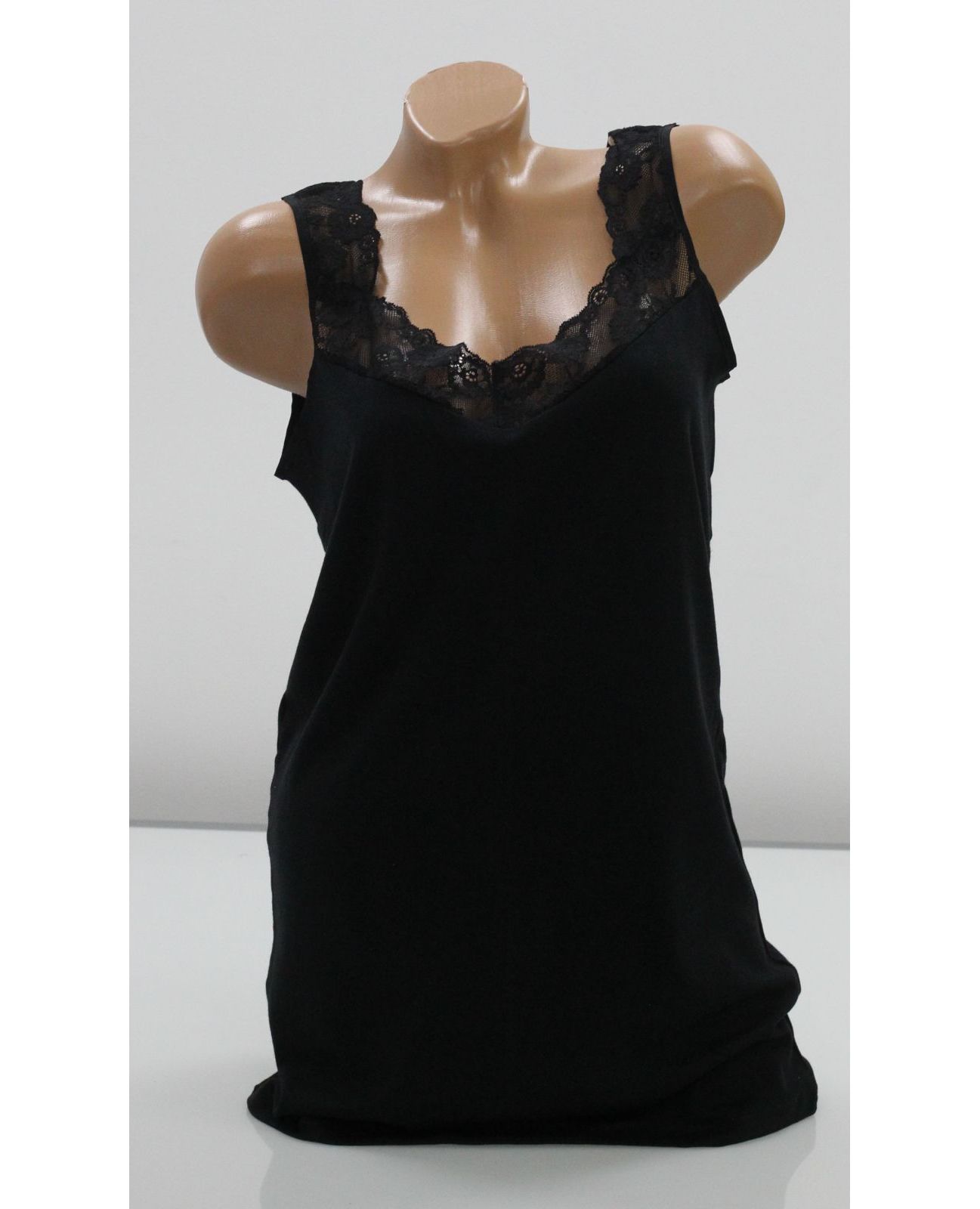 Виготовлена з м’якої та якісної тканини, приємної до тіла. Витончене мереживо додає виробу елегантності та жіночності. Завдяки вмісту еластану майка добре тягнеться, комфортно сидить по фігурі та зберігає форму після прання. Підходить для щоденного носіння та як елемент білизняного гардеробу.