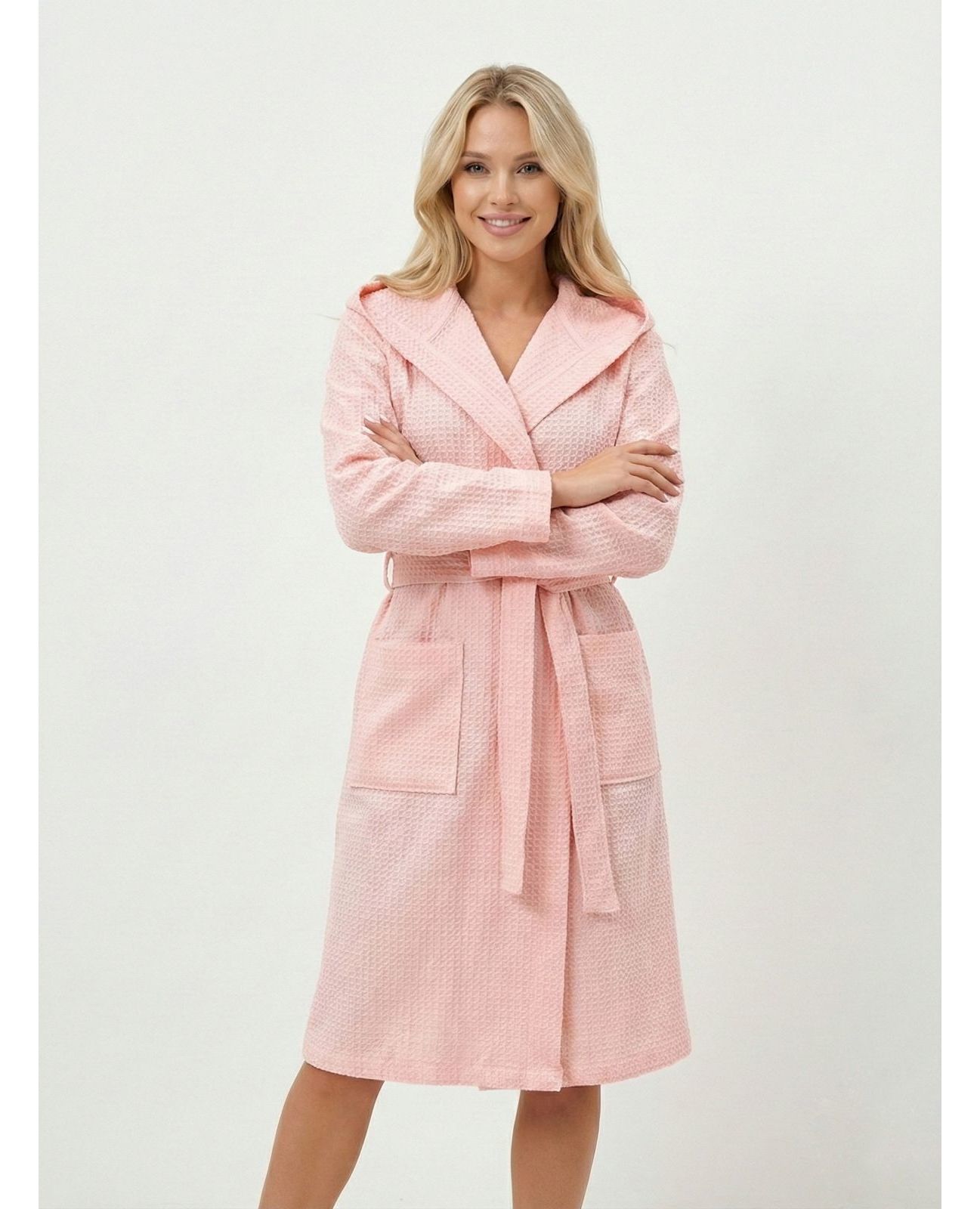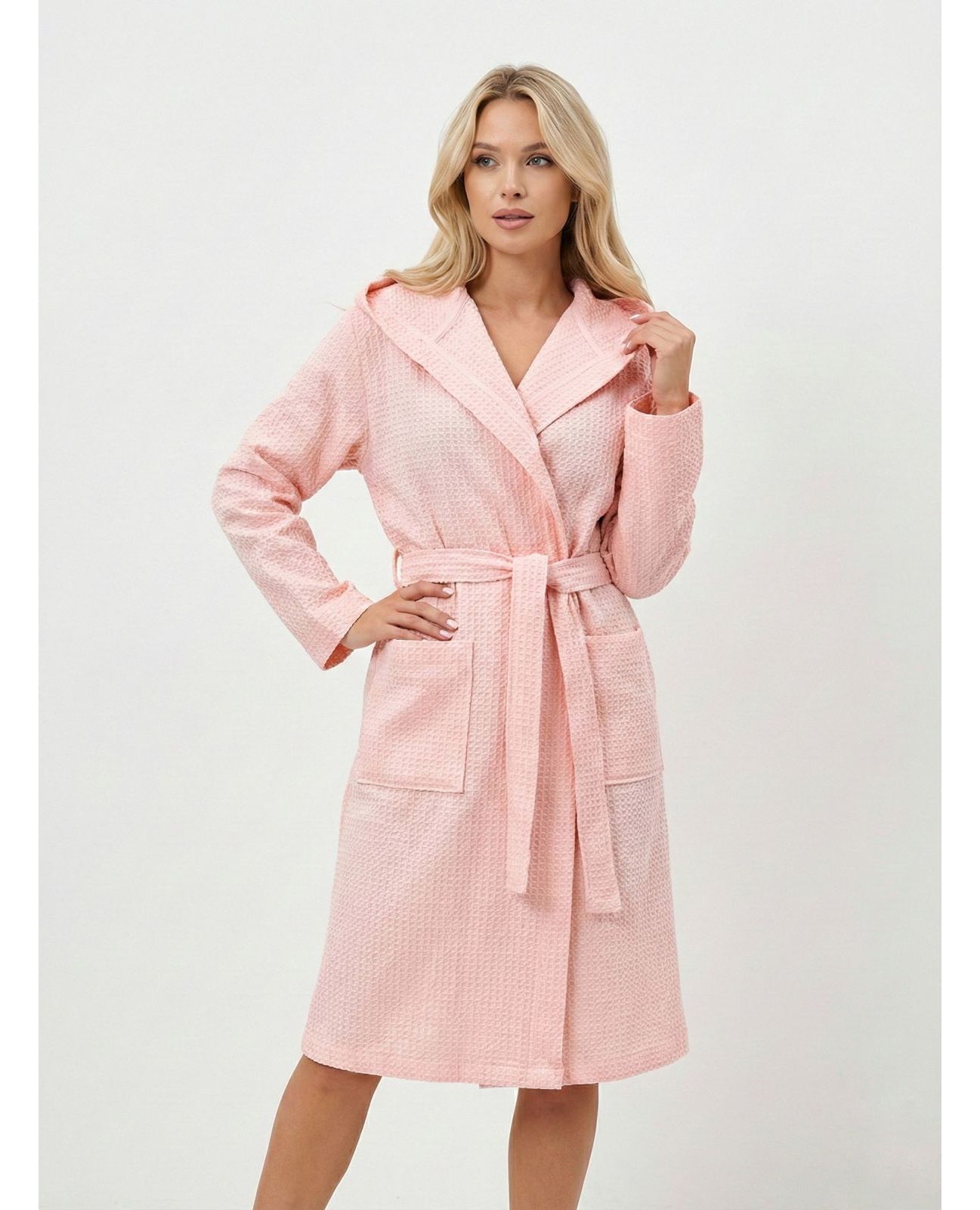 Вафельний халат з капюшоном, рожевий