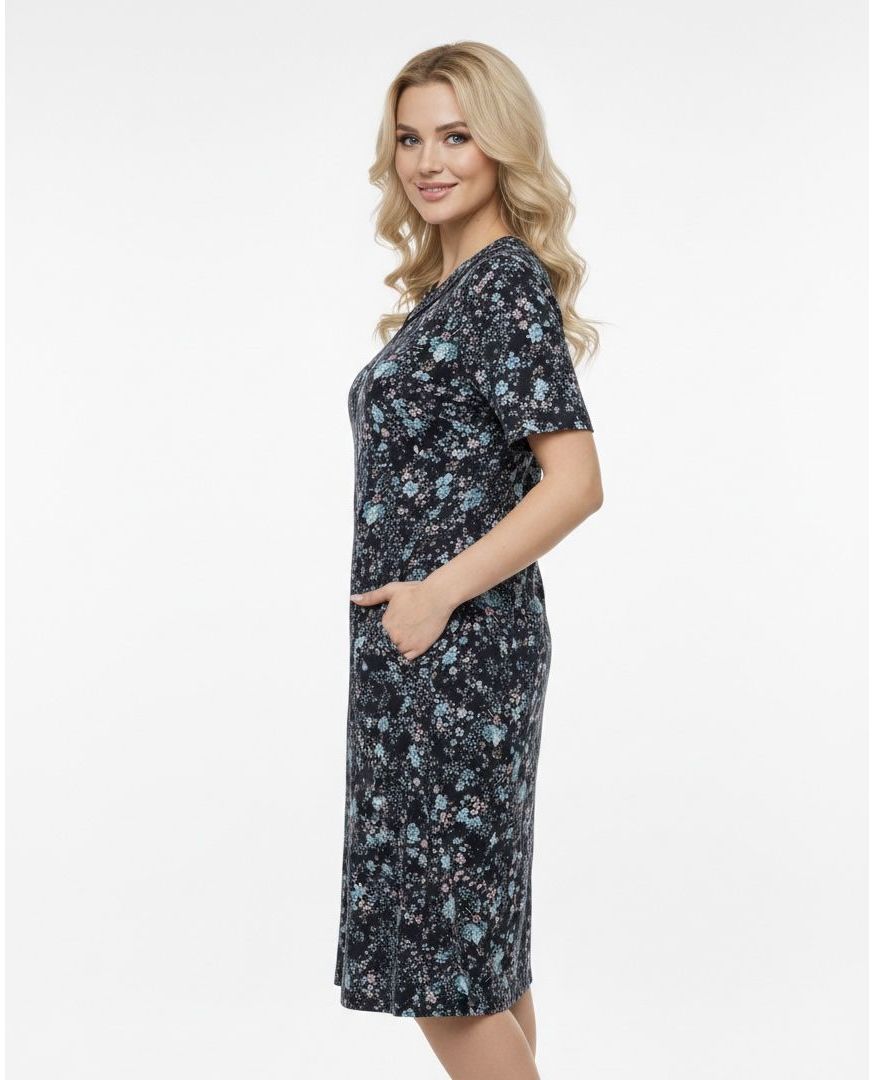 Жіночий халат на блискавці з квітковим принтом синього кольору — комфортний і практичний варіант для дому. Виріб виготовлений зі 100% бавовни, що забезпечує м’якість, хорошу повітропроникність і зручність у щоденному носінні. Квітковий принт додає моделі жіночності та привабливого вигляду, а застібка-блискавка робить халат функціональним і зручним.