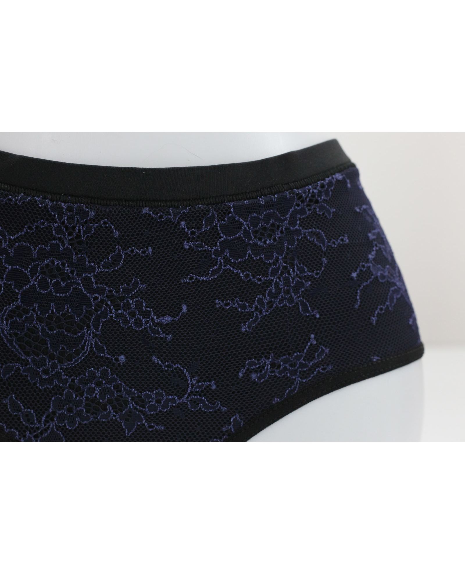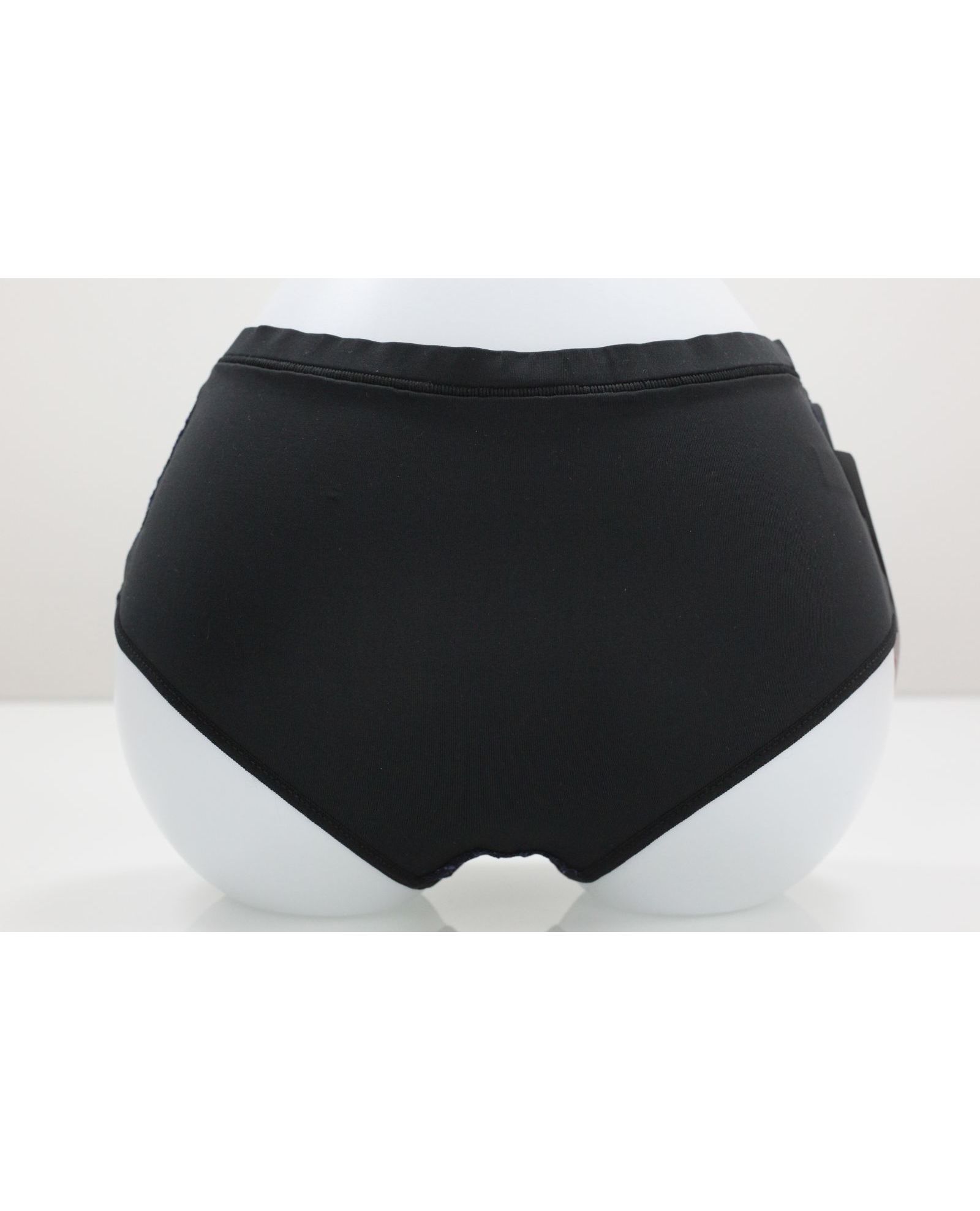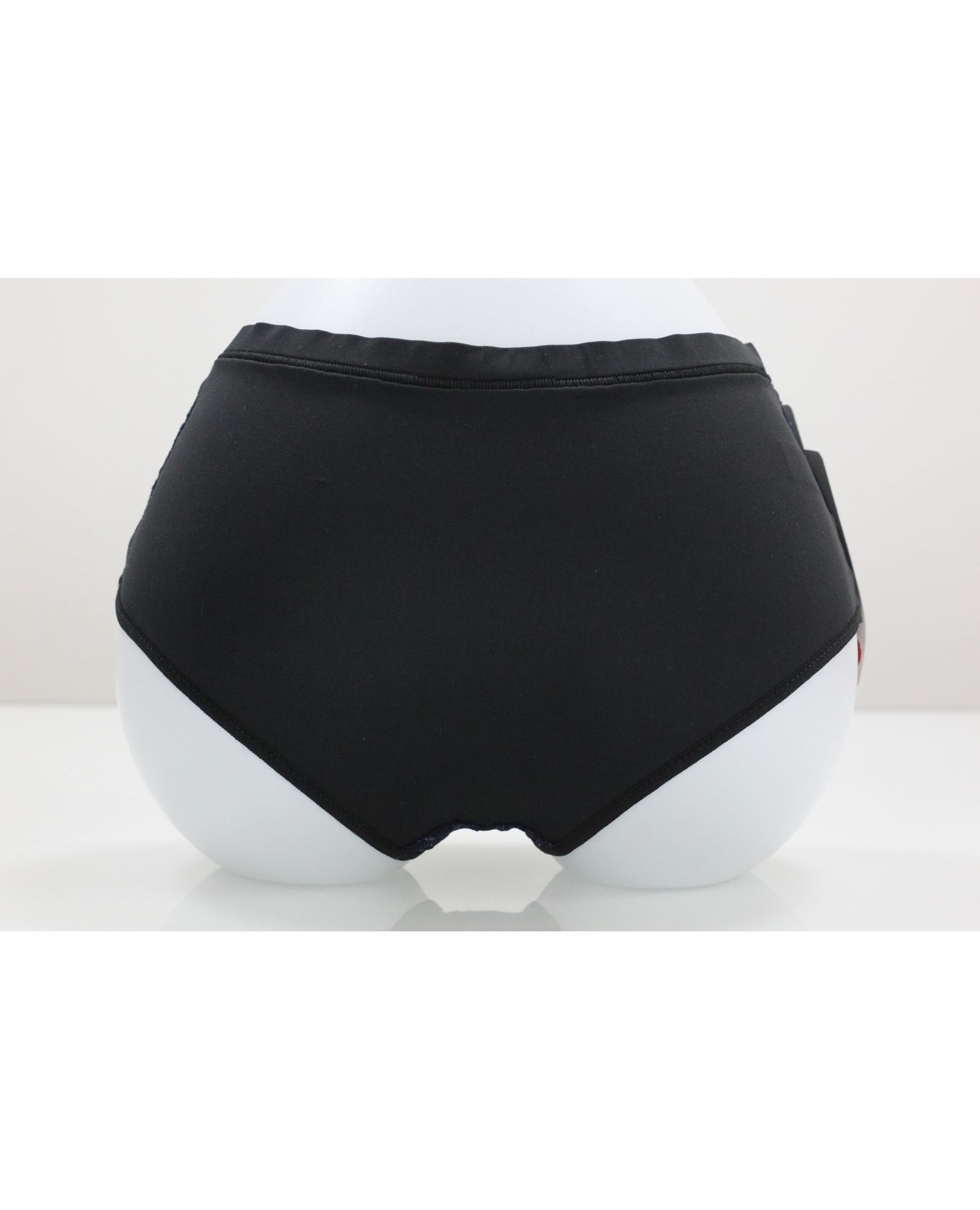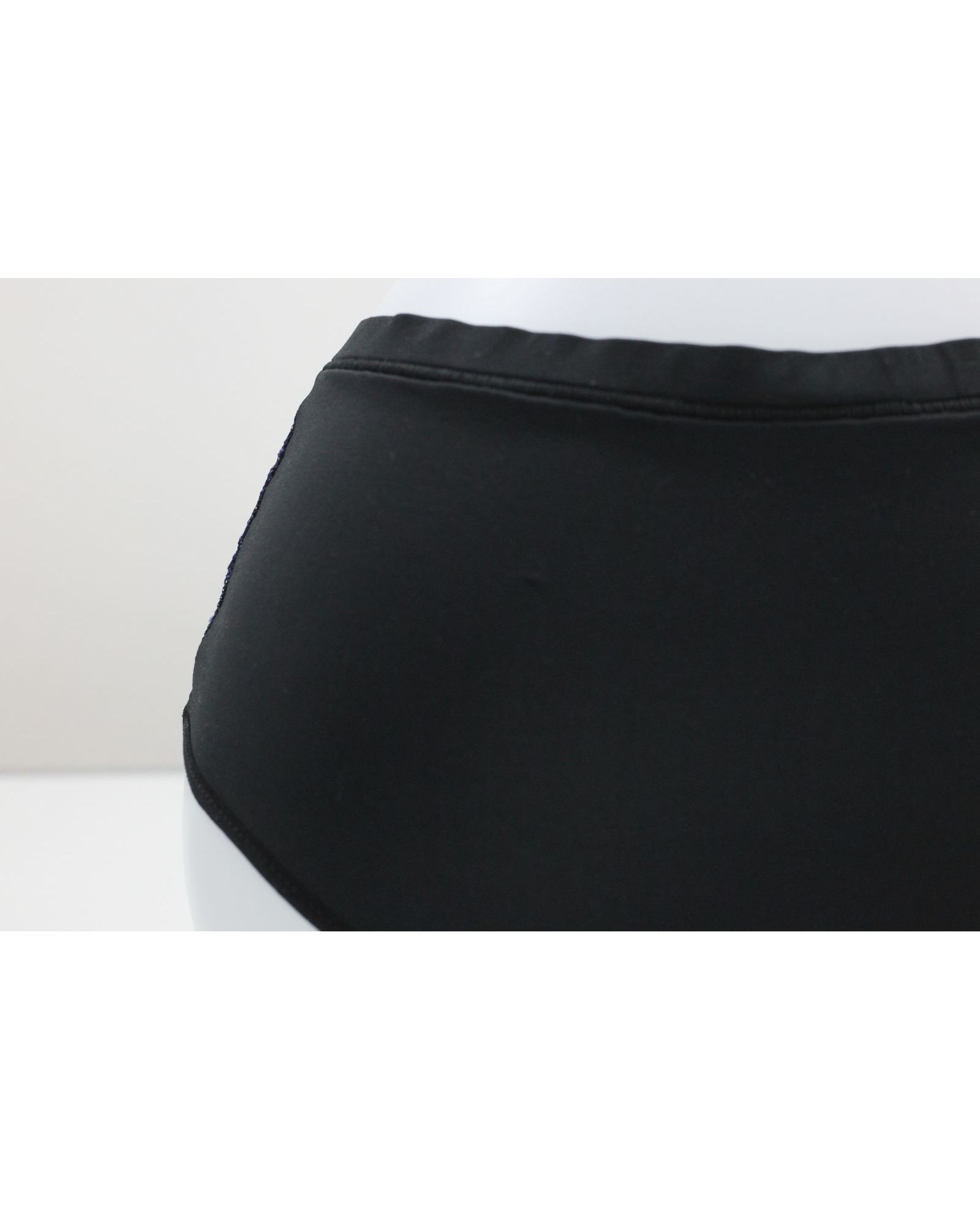 Стильні жіночі плавки чорного кольору з синіми акцентами та декоративною вишивкою виглядають ефектно й сучасно. Модель м’яко прилягає до тіла, забезпечуючи комфорт і свободу рухів упродовж усього дня. Еластичний матеріал добре тягнеться, зберігаючи форму та привабливий вигляд.