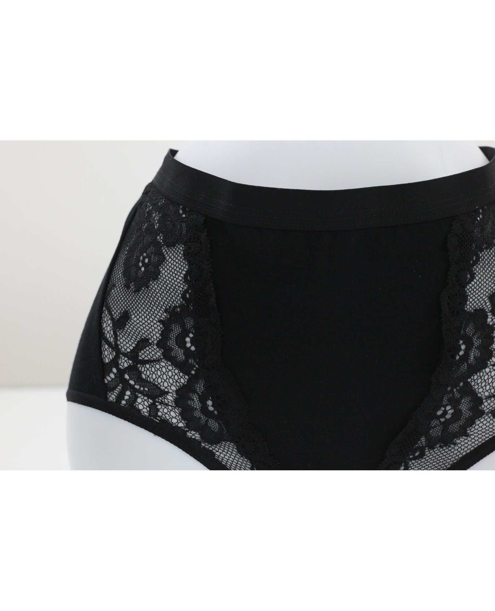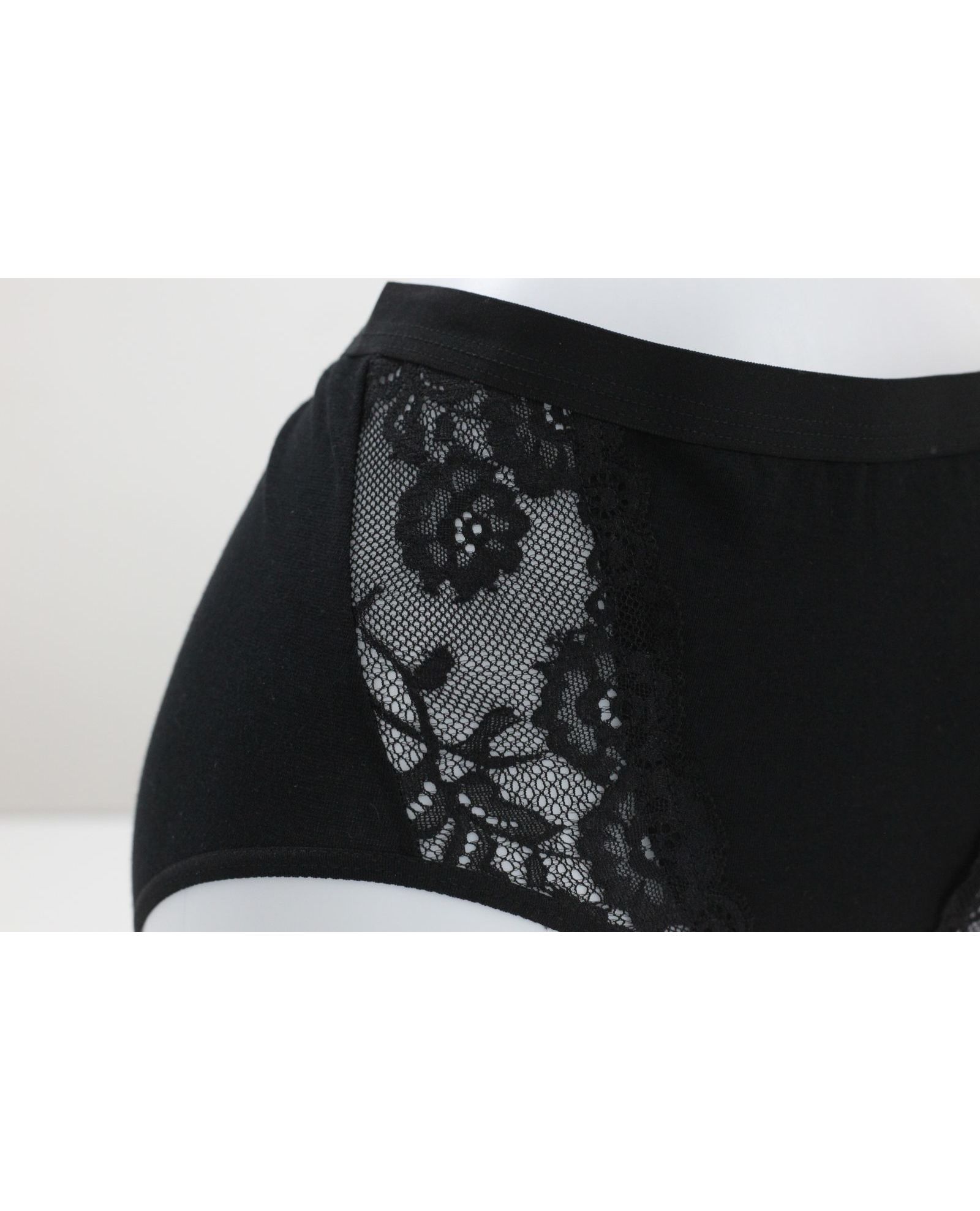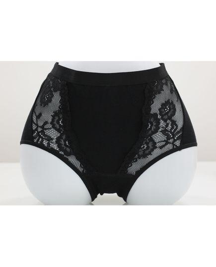 Жіночі плавки чорного кольору, оздоблені елегантним мереживом. Модель забезпечує комфортну посадку та приємні відчуття протягом усього дня. Поєднання натуральної бавовни та еластану гарантує м’якість, еластичність і довговічність.