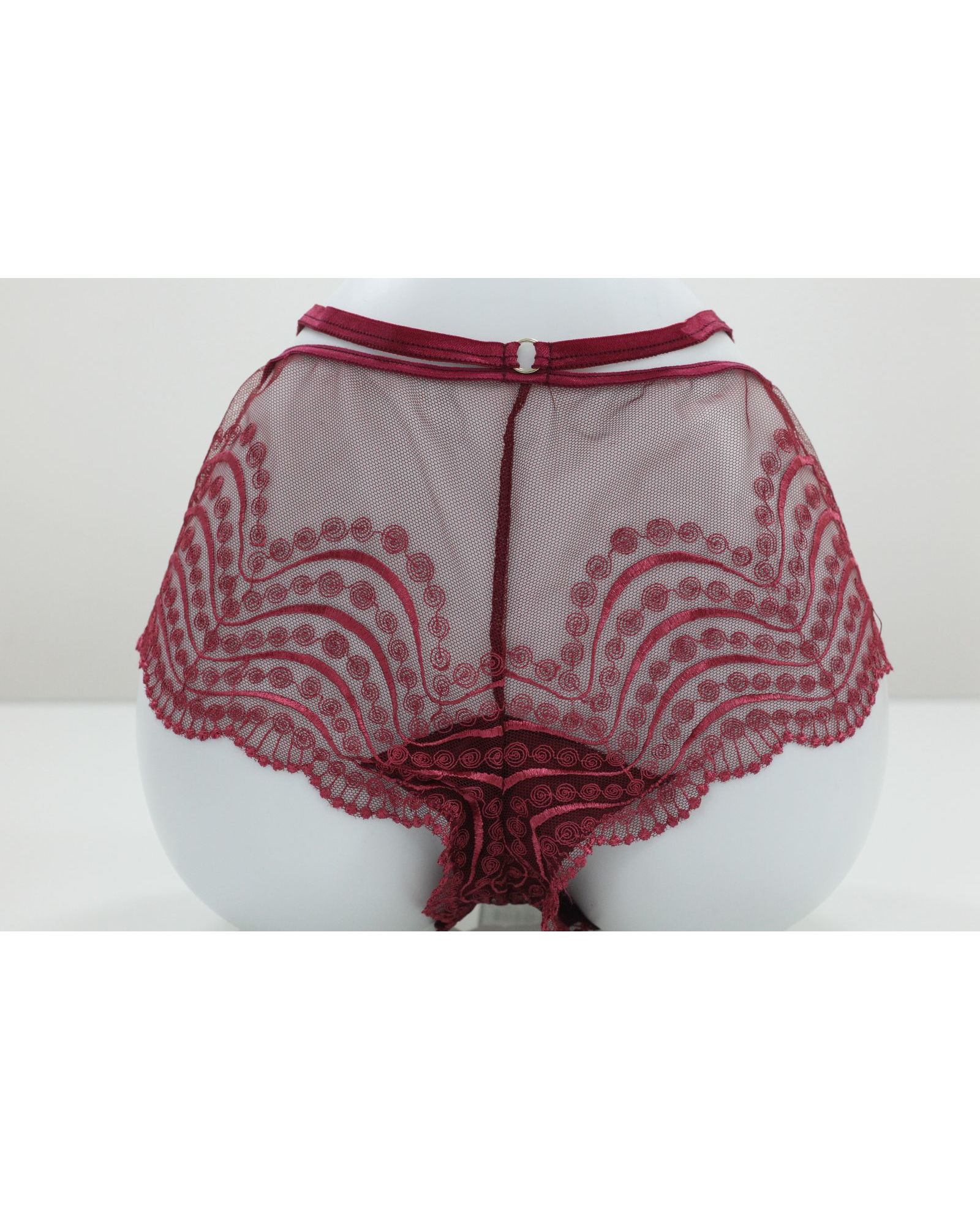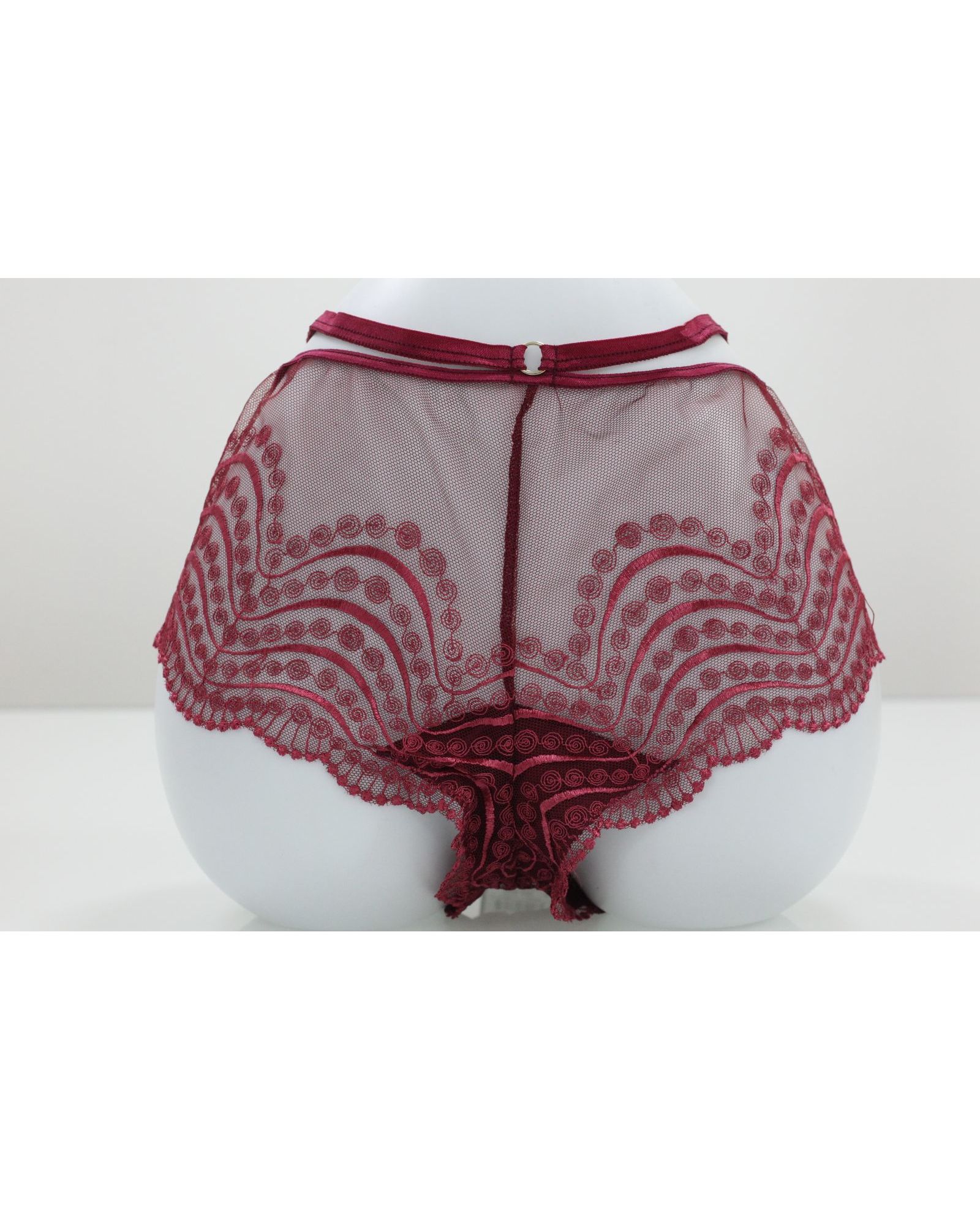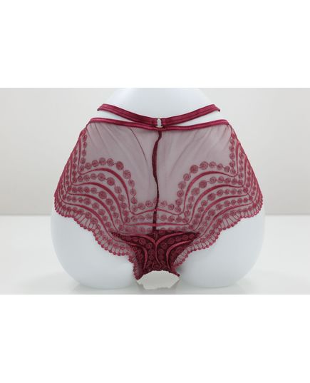 Стильні жіночі плавки бордового кольору з ніжним мереживом підкреслюють елегантність і жіночність. Модель м’яко прилягає до тіла, забезпечуючи комфорт і свободу рухів протягом дня. Еластичний матеріал добре тримає форму та приємний на дотик.