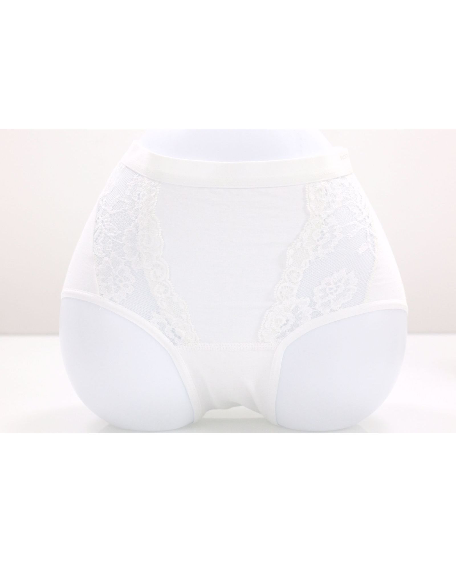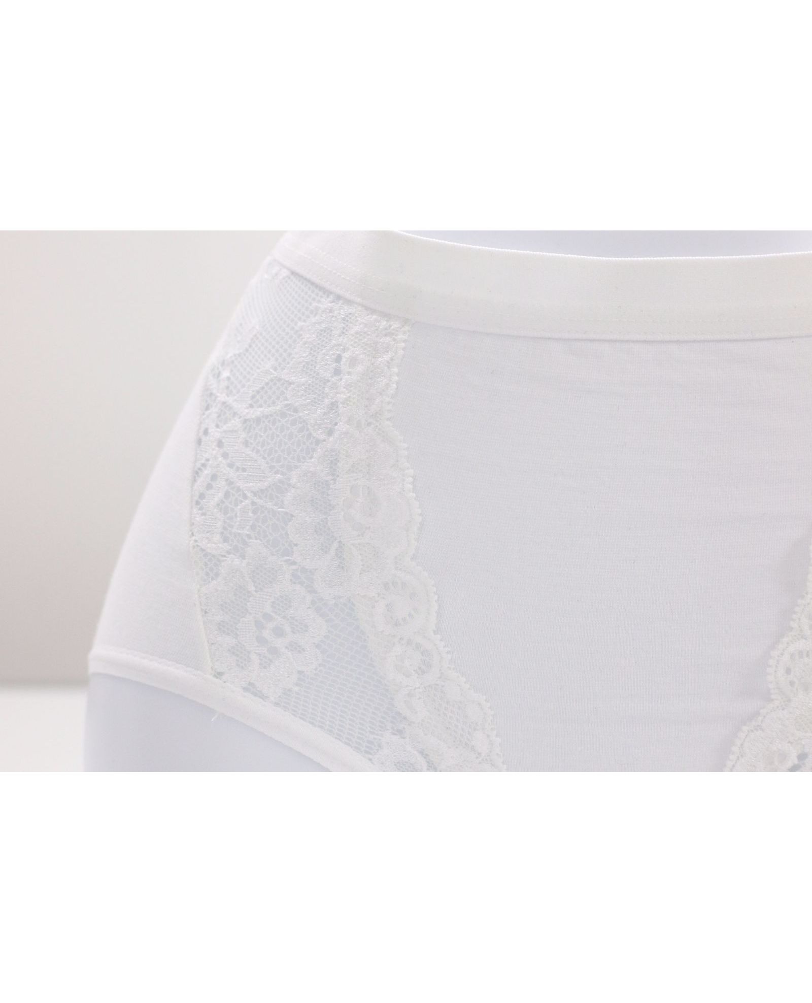 Жіночі плавки білого кольору, оздоблені ніжним мереживом. Модель забезпечує комфортну посадку та приємні відчуття протягом усього дня. Натуральна бавовна дарує м’якість, а еластан забезпечує еластичність і довговічність.