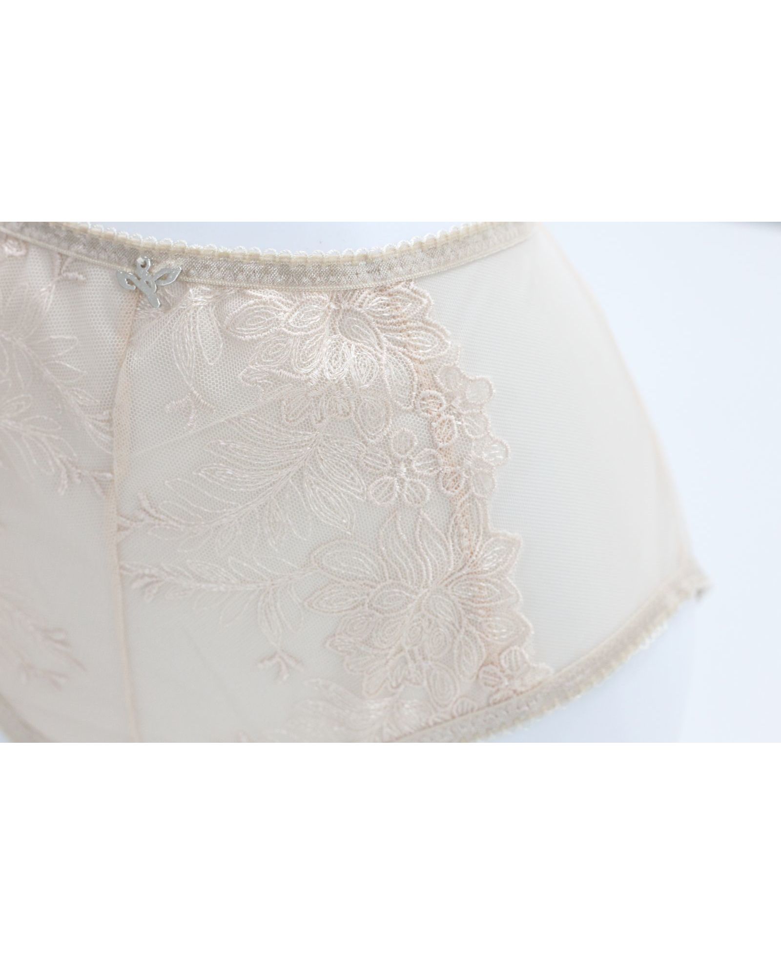 Елегантні жіночі плавки бежевого кольору, оздоблені витонченою вишивкою, підкреслюють жіночність і стильний образ. Модель м’яко прилягає до тіла, забезпечуючи комфорт і свободу рухів протягом усього дня. Високоякісний еластичний матеріал добре тримає форму та приємний на дотик.