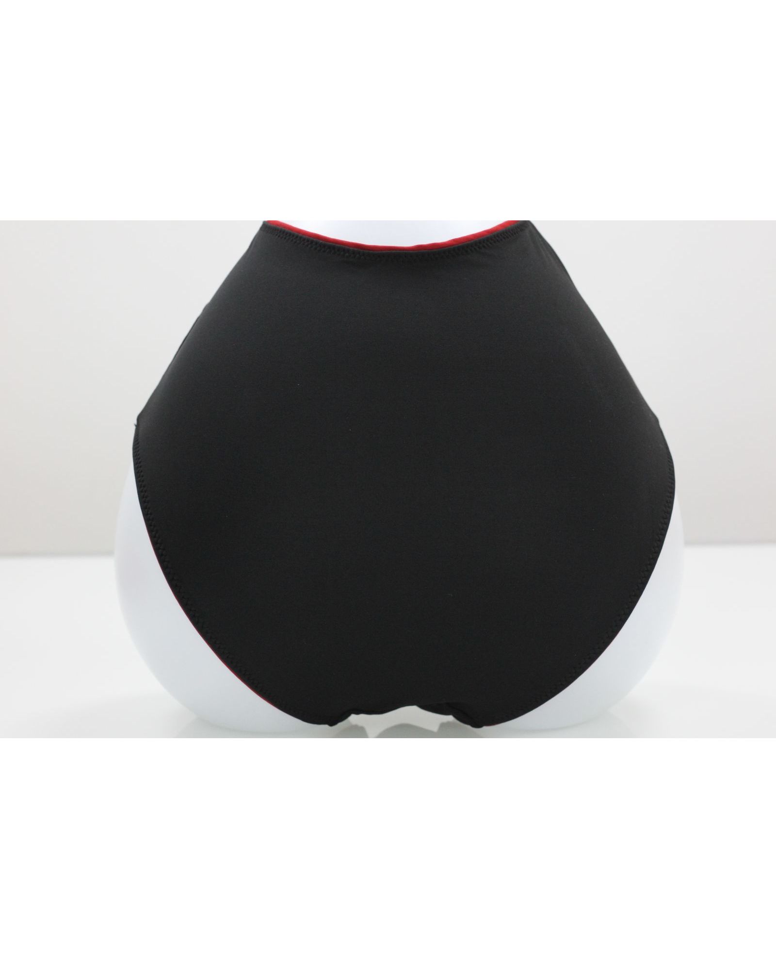 Ефектні жіночі плавки поєднують класичний чорний колір із яскравими червоними акцентами та витонченим мереживом. Еластичний матеріал приємний до тіла, добре тягнеться та забезпечує комфортну посадку. Модель підкреслює жіночність і додає образу виразності.