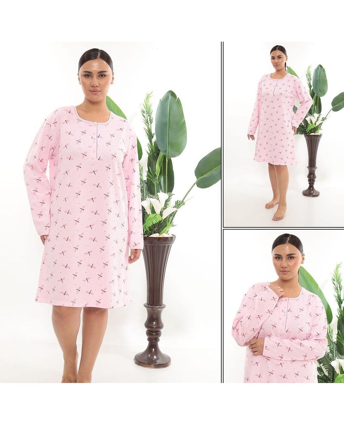 Тепла нічна сорочка з довгим рукавом, рожева