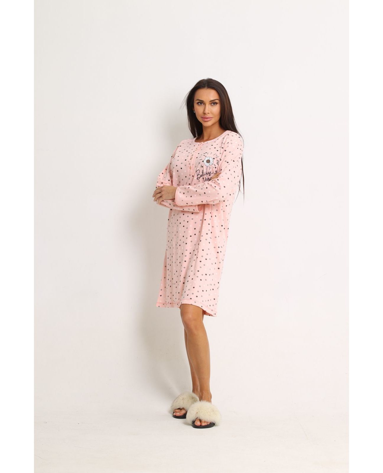 Тепла нічна сорочка з довгим рукавом, персикового кольору