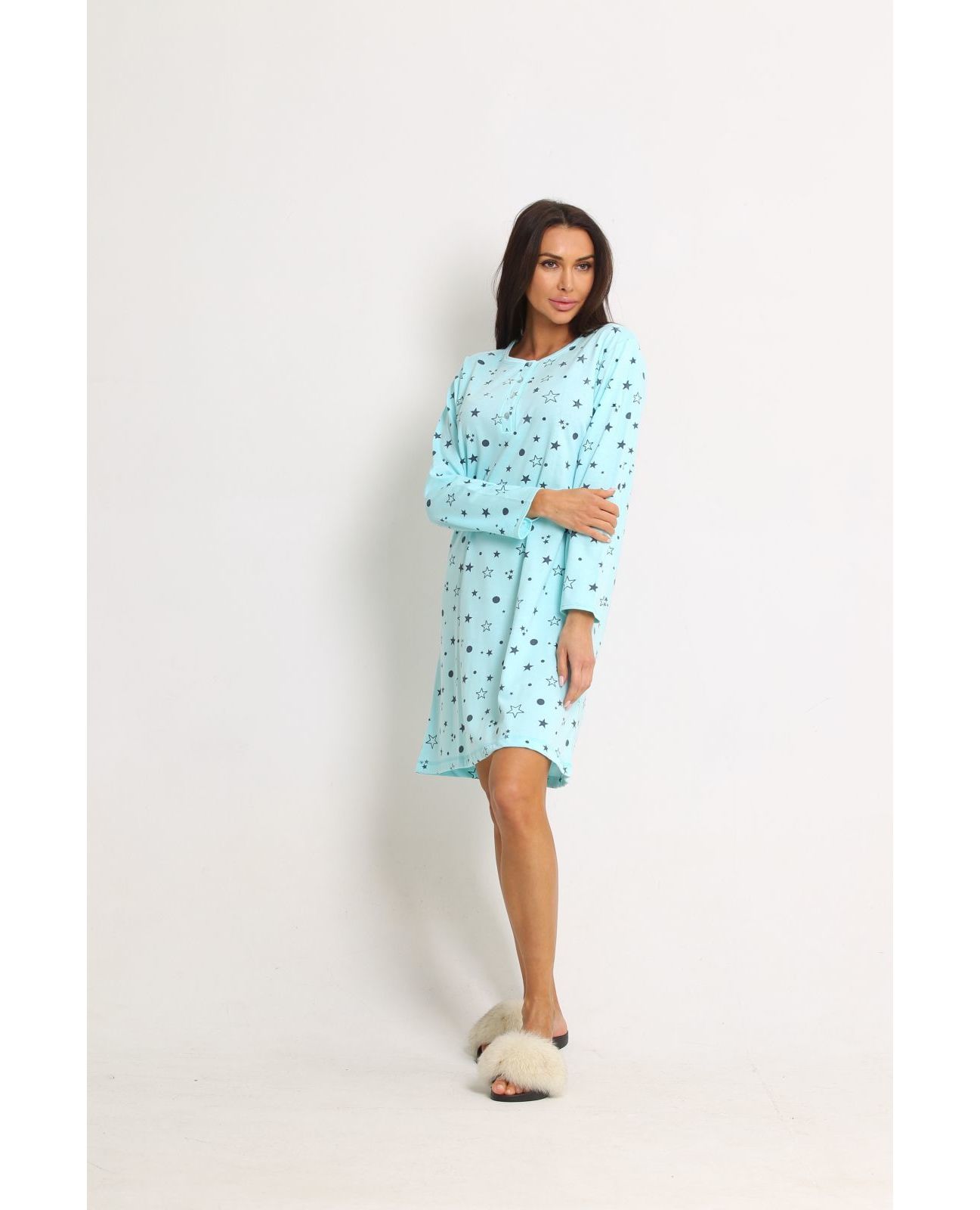 Тепла нічна сорочка з довгим рукавом, бірюзового кольору